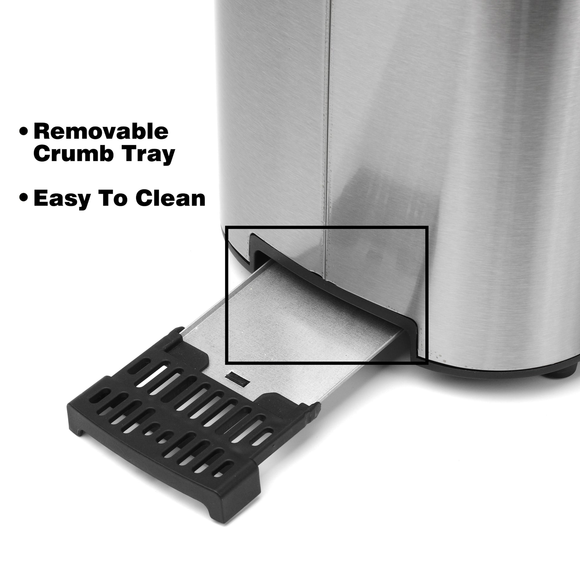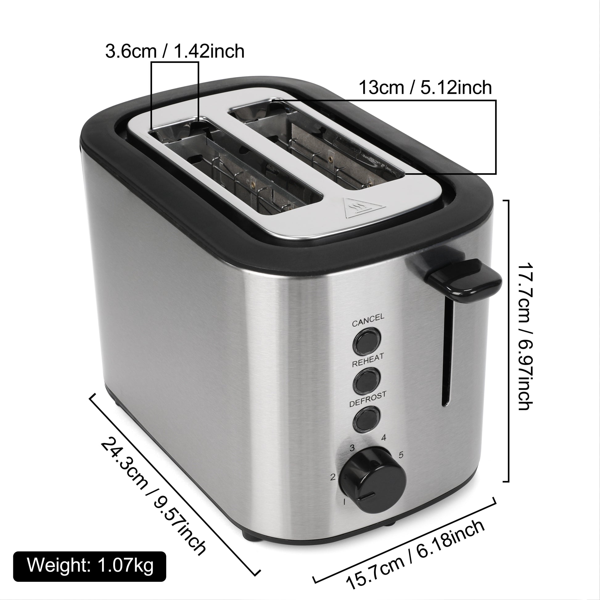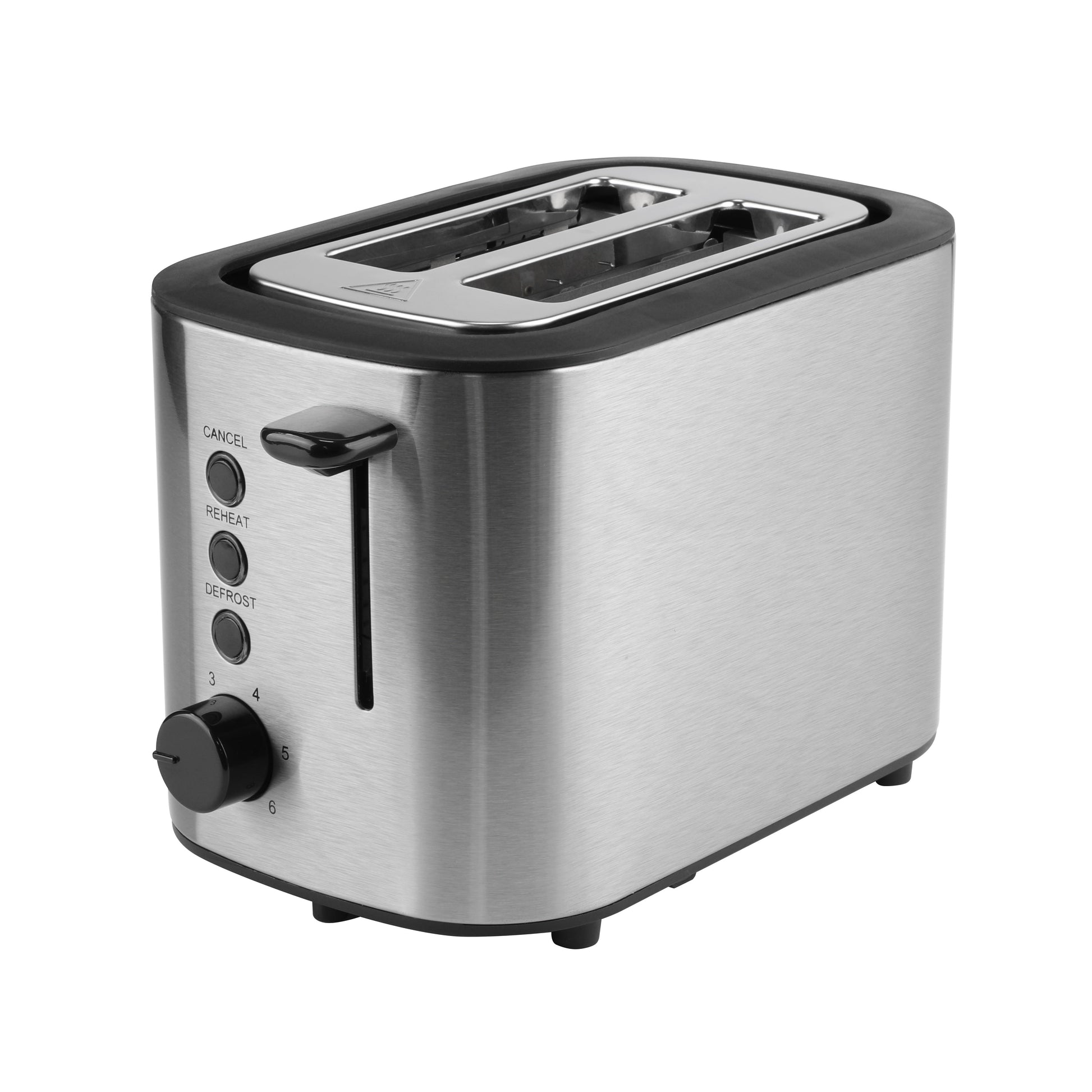 Tostadora de acero inoxidable para 2 rebanadas con acabado antihuellas y 6 niveles de tostado