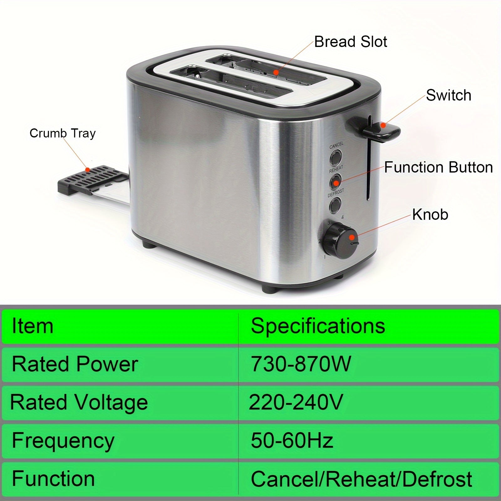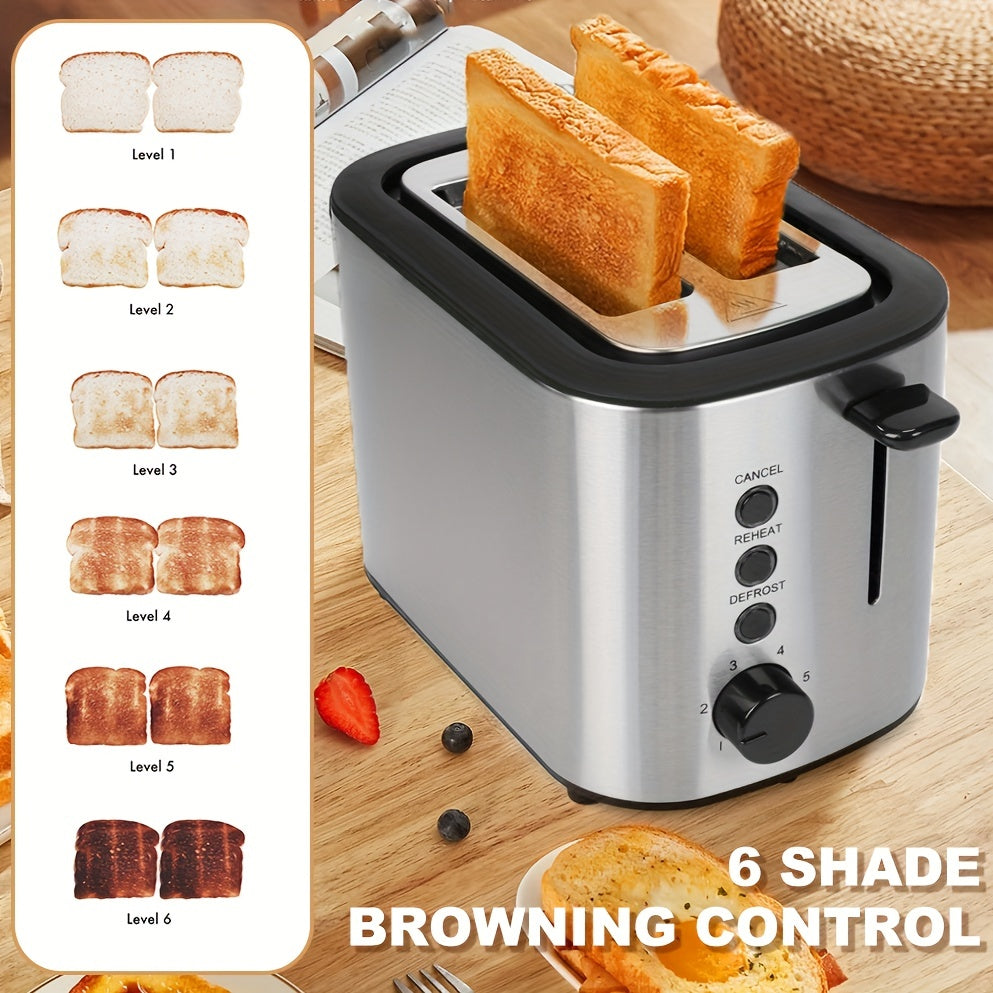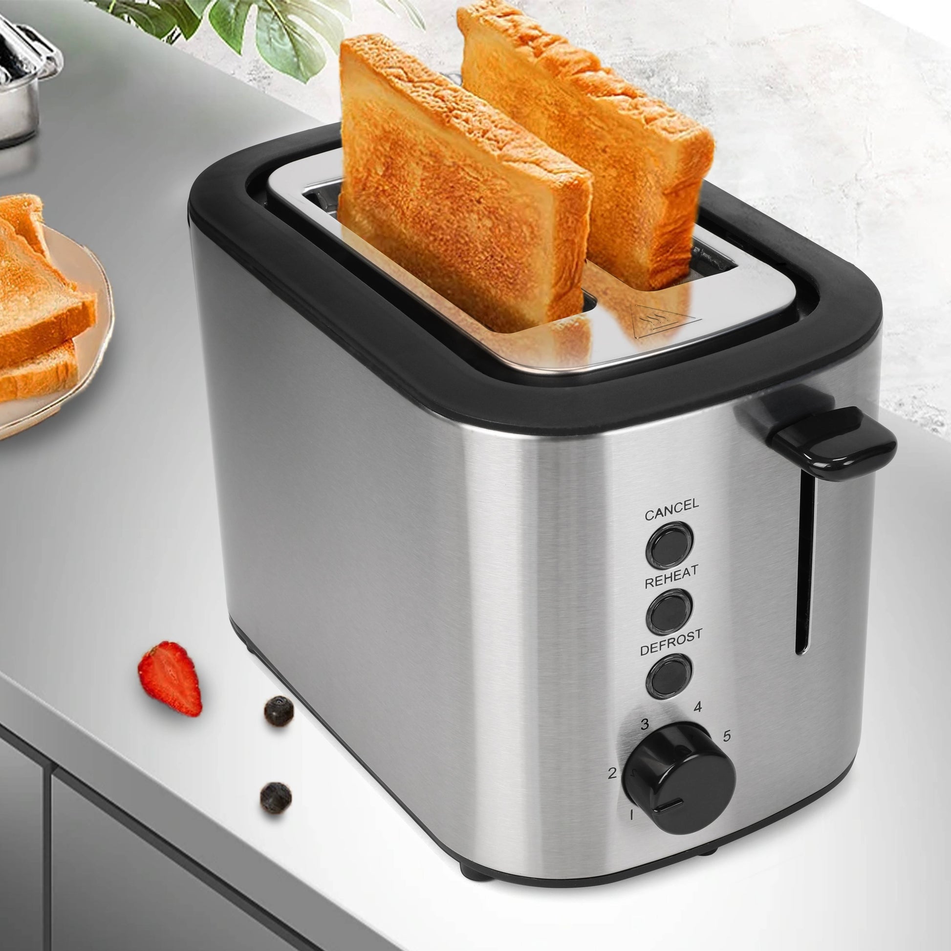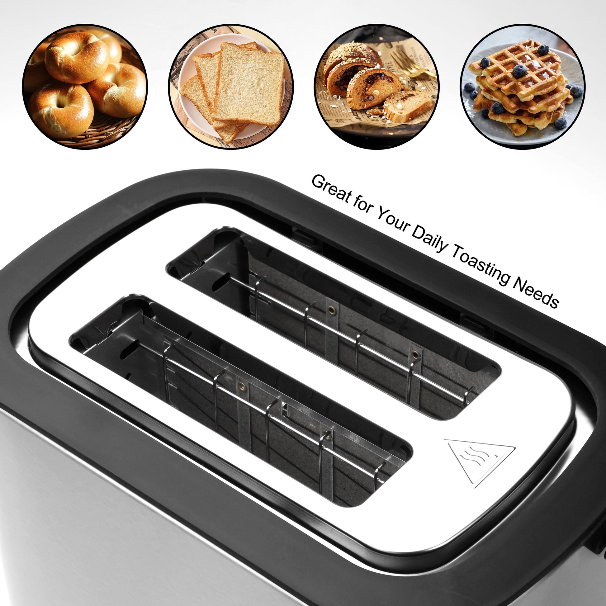 Tostadora de acero inoxidable para 2 rebanadas con acabado antihuellas y 6 niveles de tostado