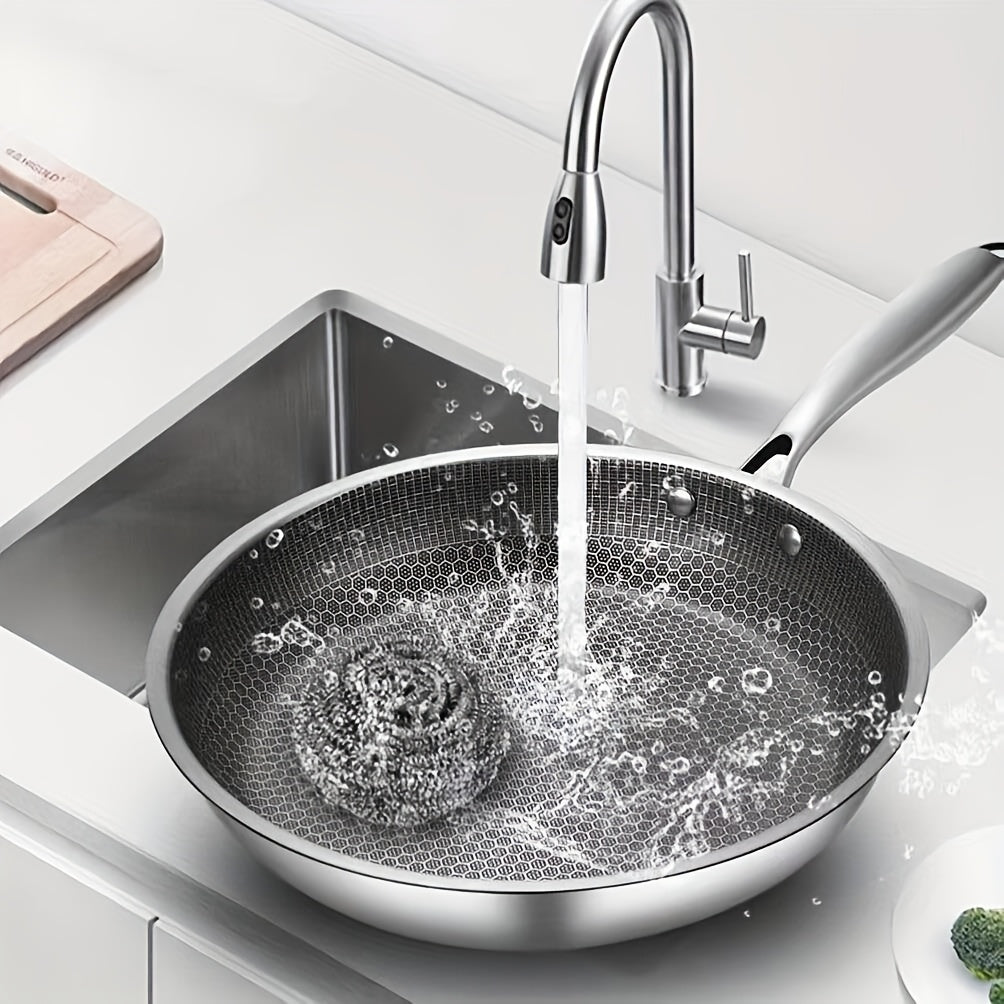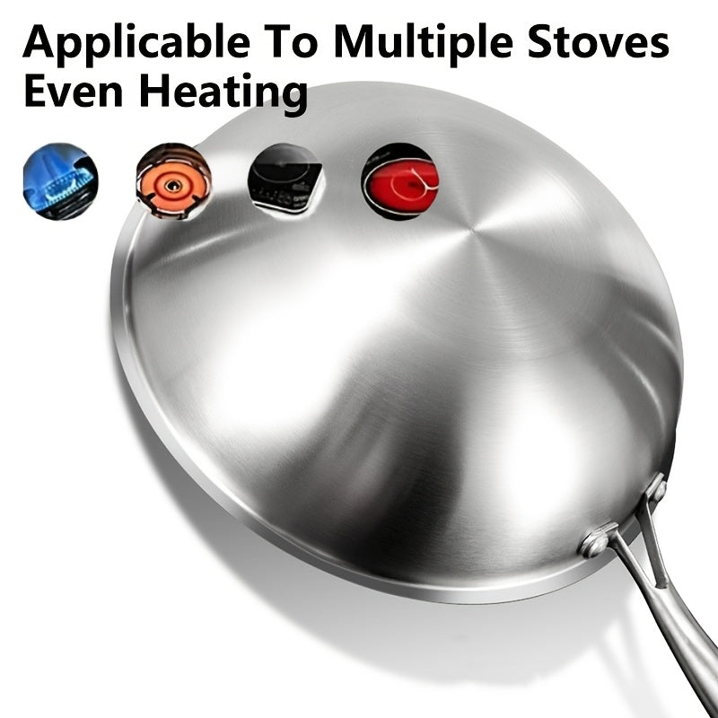 Sartén wok de acero inoxidable con tapa de vidrio, antiadherente, apta para inducción, gas, adecuada para huevos de pescado, filetes