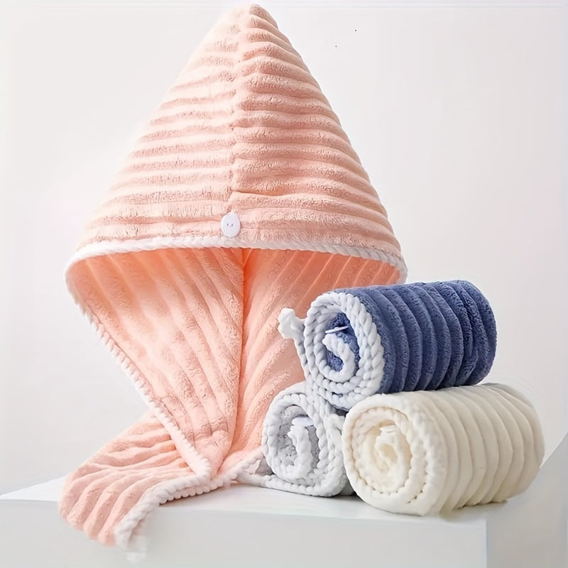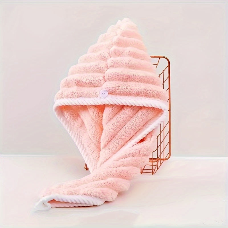 Toalla de pelo de felpa de coral con rayas rosas, envoltorio, de secado rápido y ultra suave