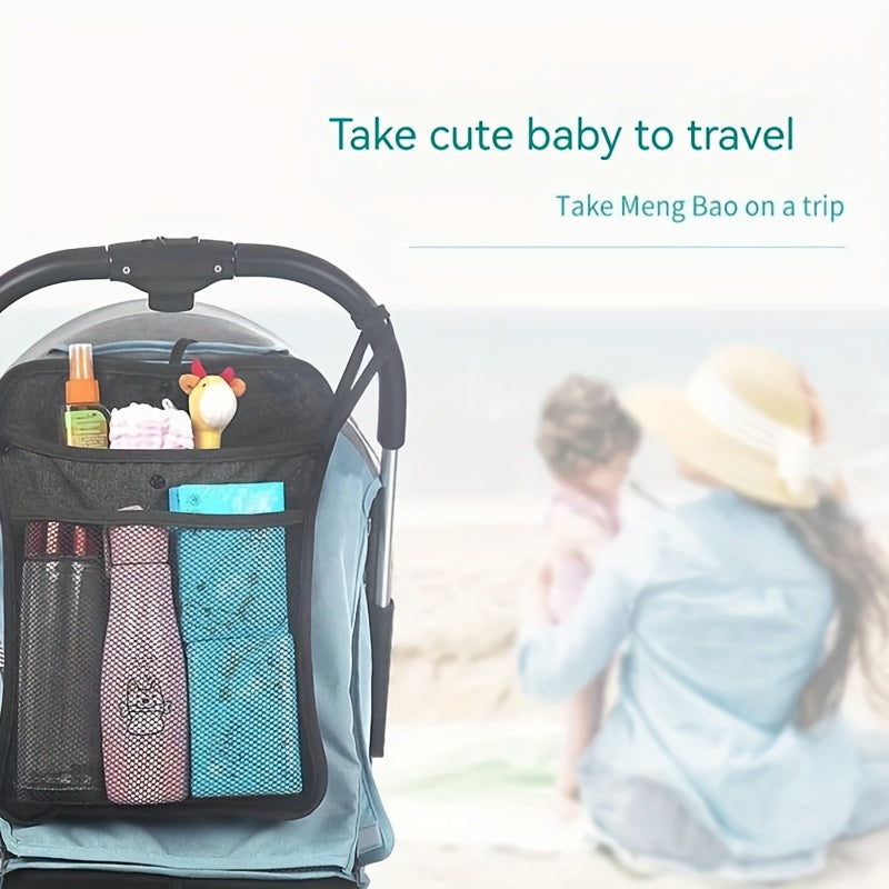 Bolsa organizadora para cochecito con bolsa de almacenamiento de malla de doble capa