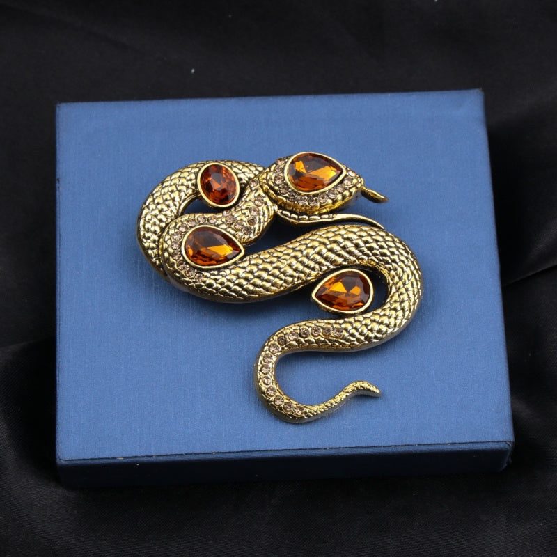 Broche antiguo de serpiente de cristal con rhinestones para chaquetas y suéteres