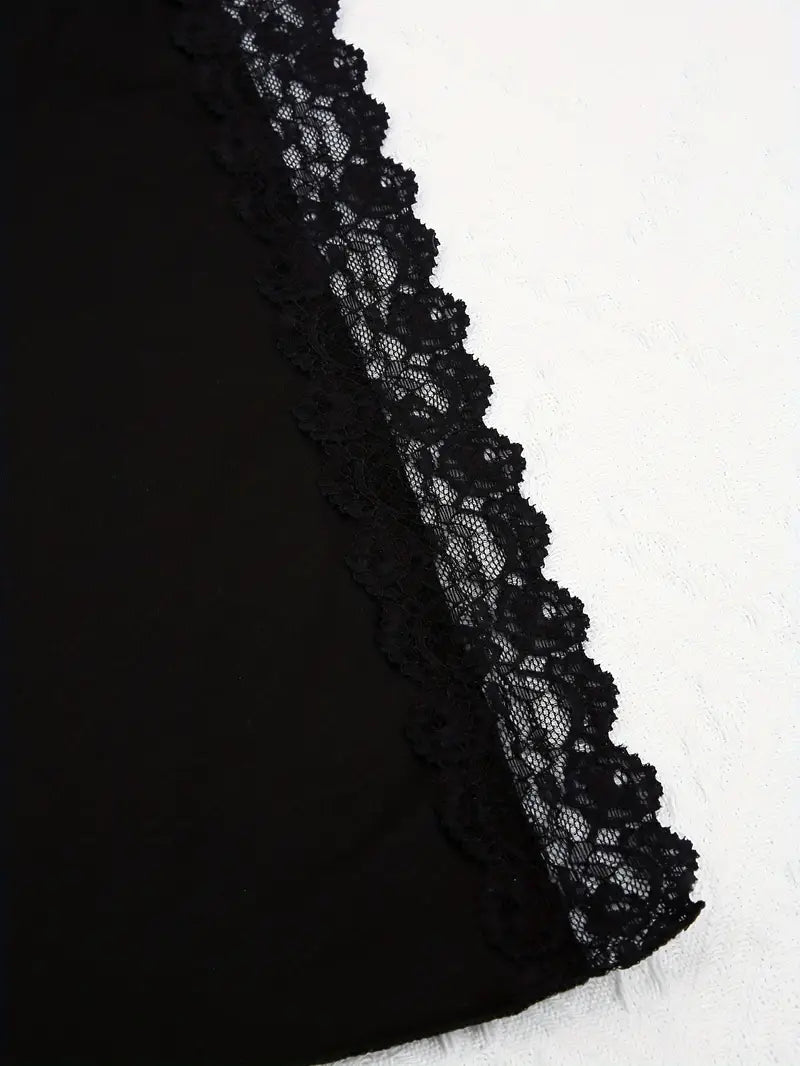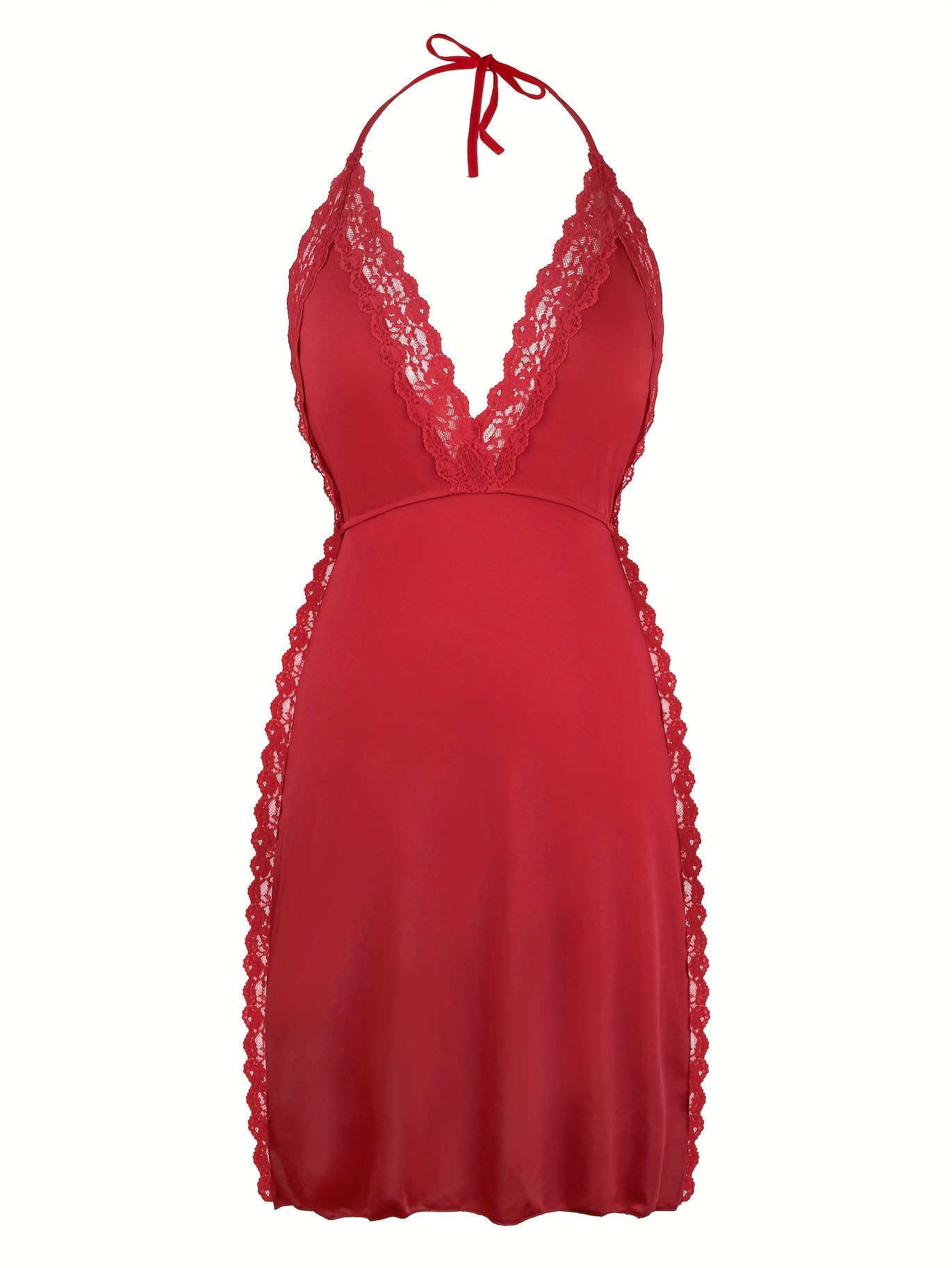 Vestido de encaje negro con escote en V profundo, abertura trasera sin espalda para noche o ropa de dormir