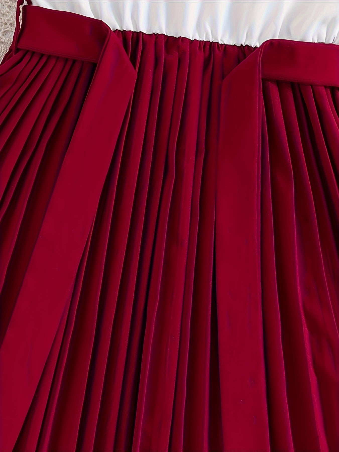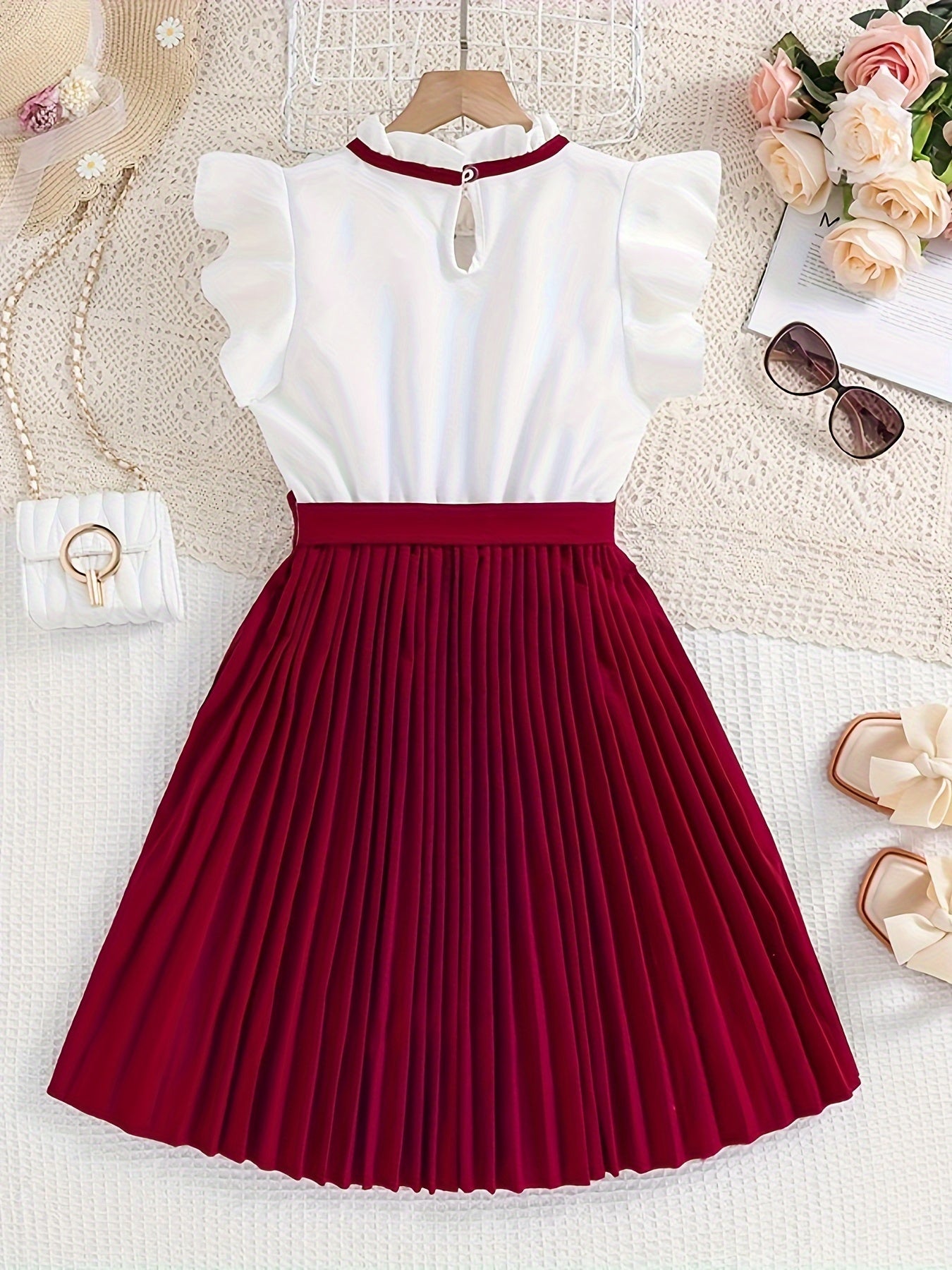 Vestido de verano plisado y de colores en bloques para niñas, a la rodilla, sin mangas y con cinturón
