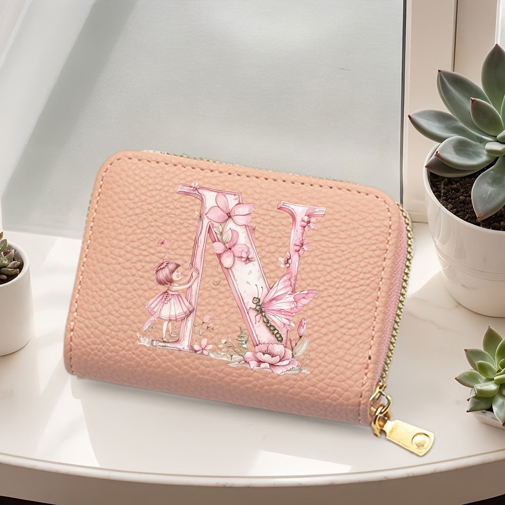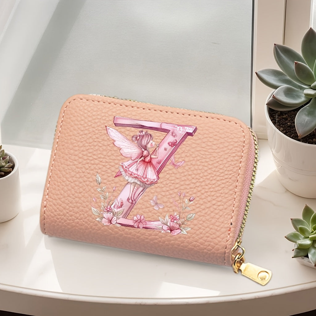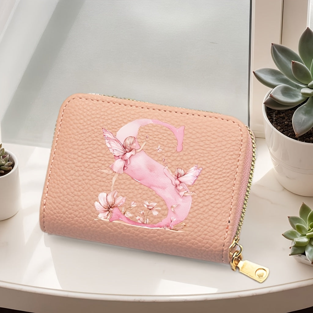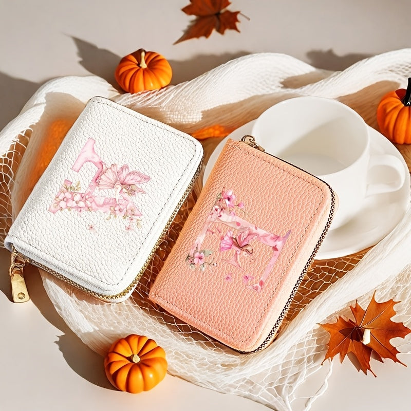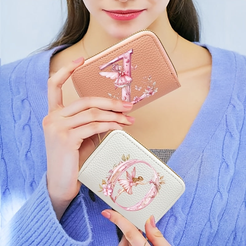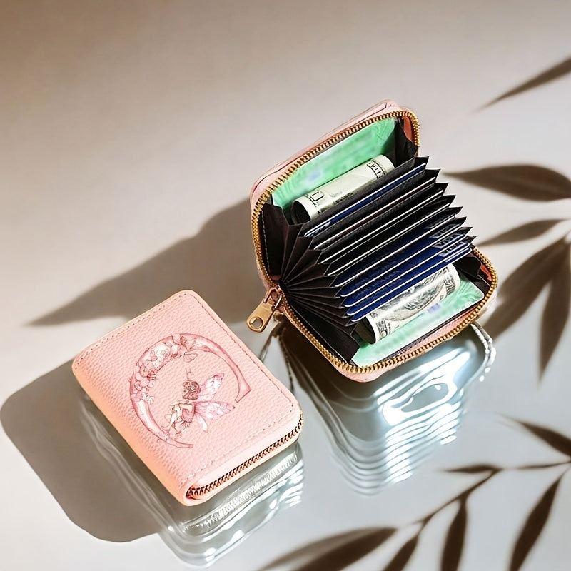 Tarjetero de mujer de cuero sintético, estilo acordeón delgado, con cierre de cremallera para monedas