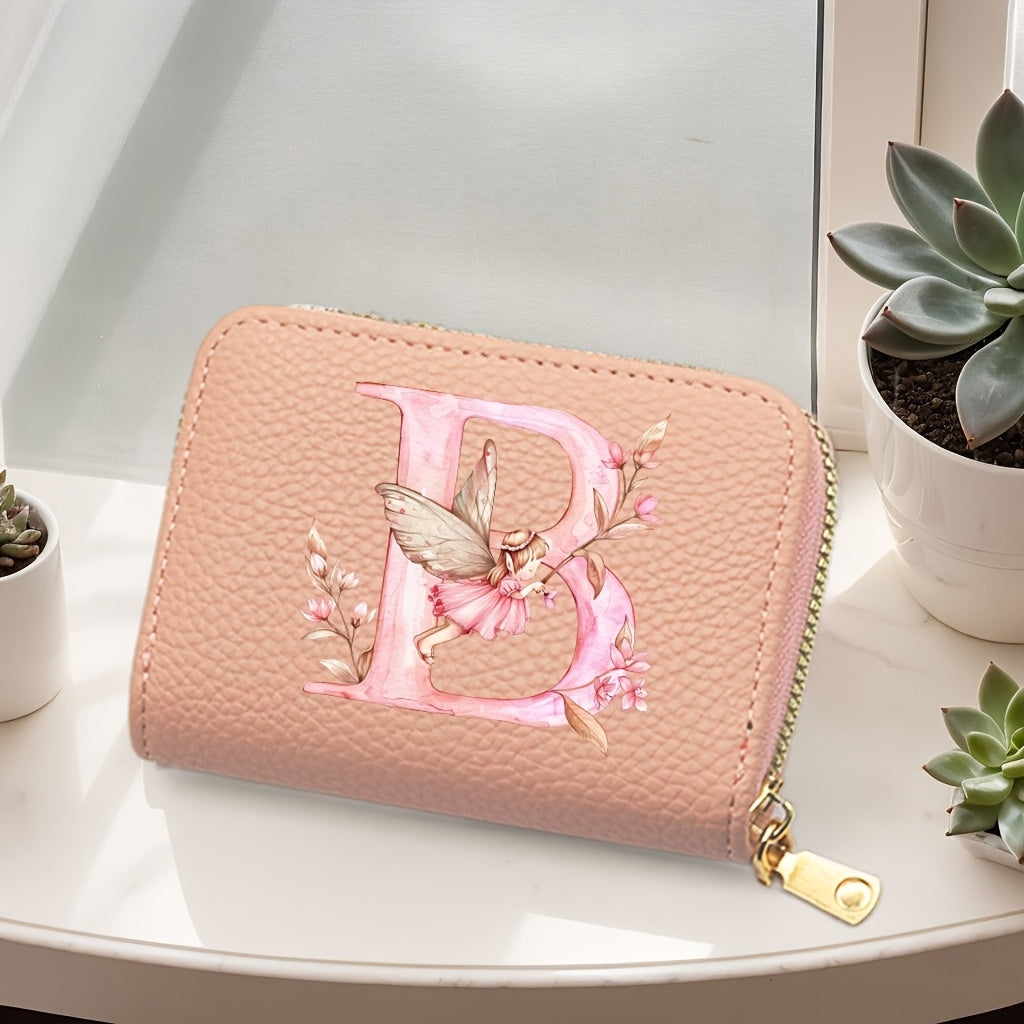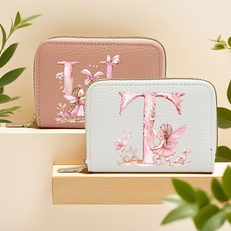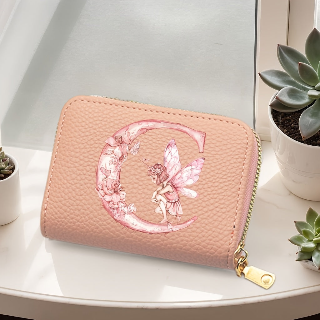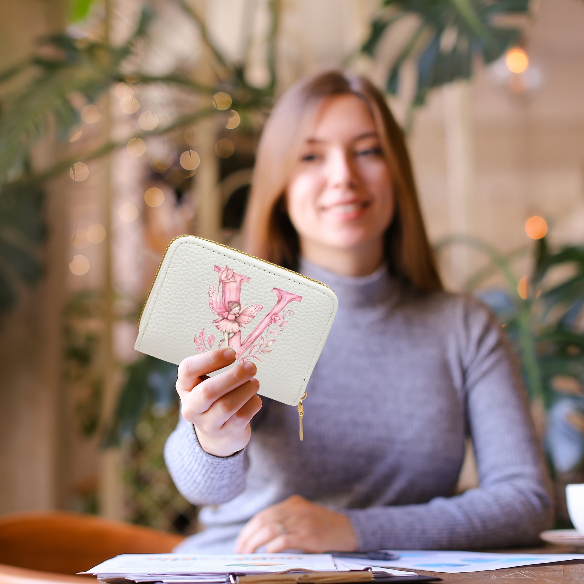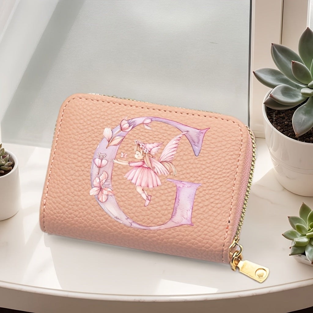 Tarjetero de mujer de cuero sintético, estilo acordeón delgado, con cierre de cremallera para monedas