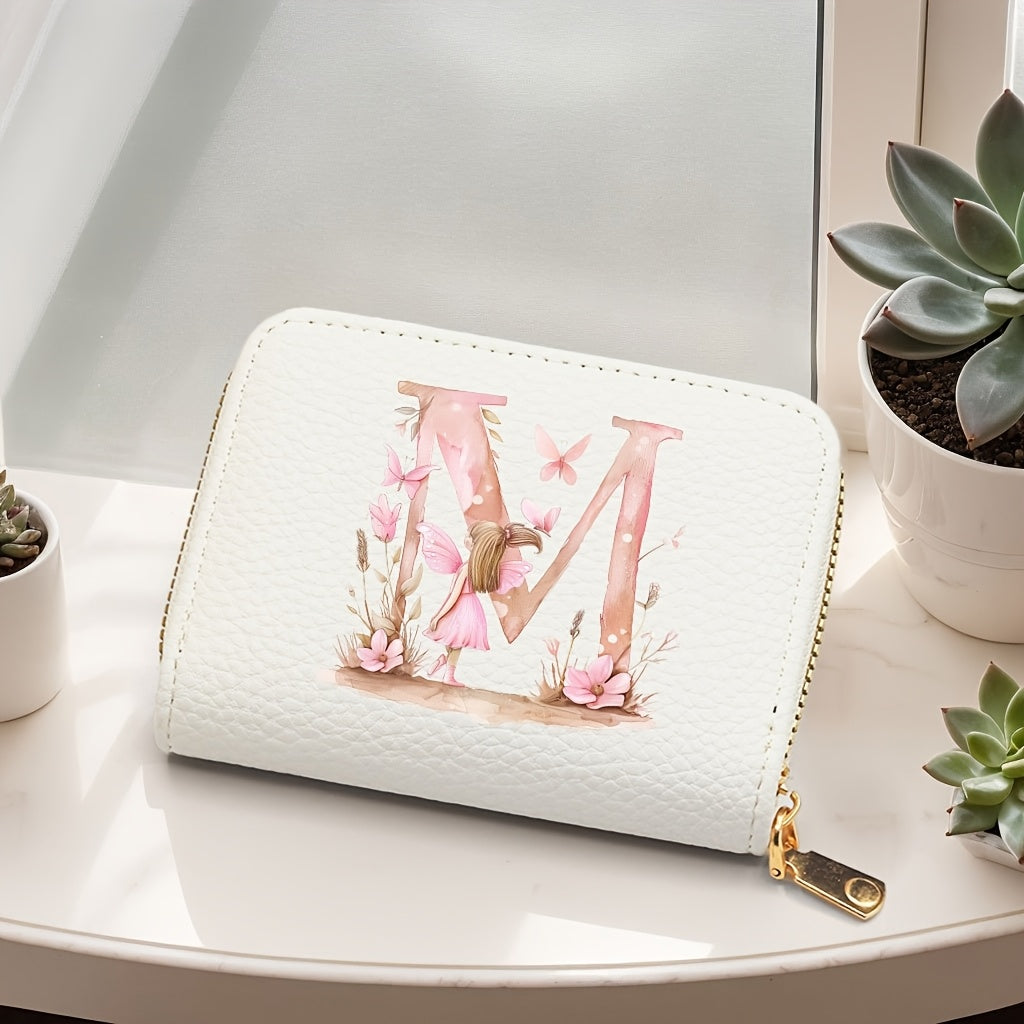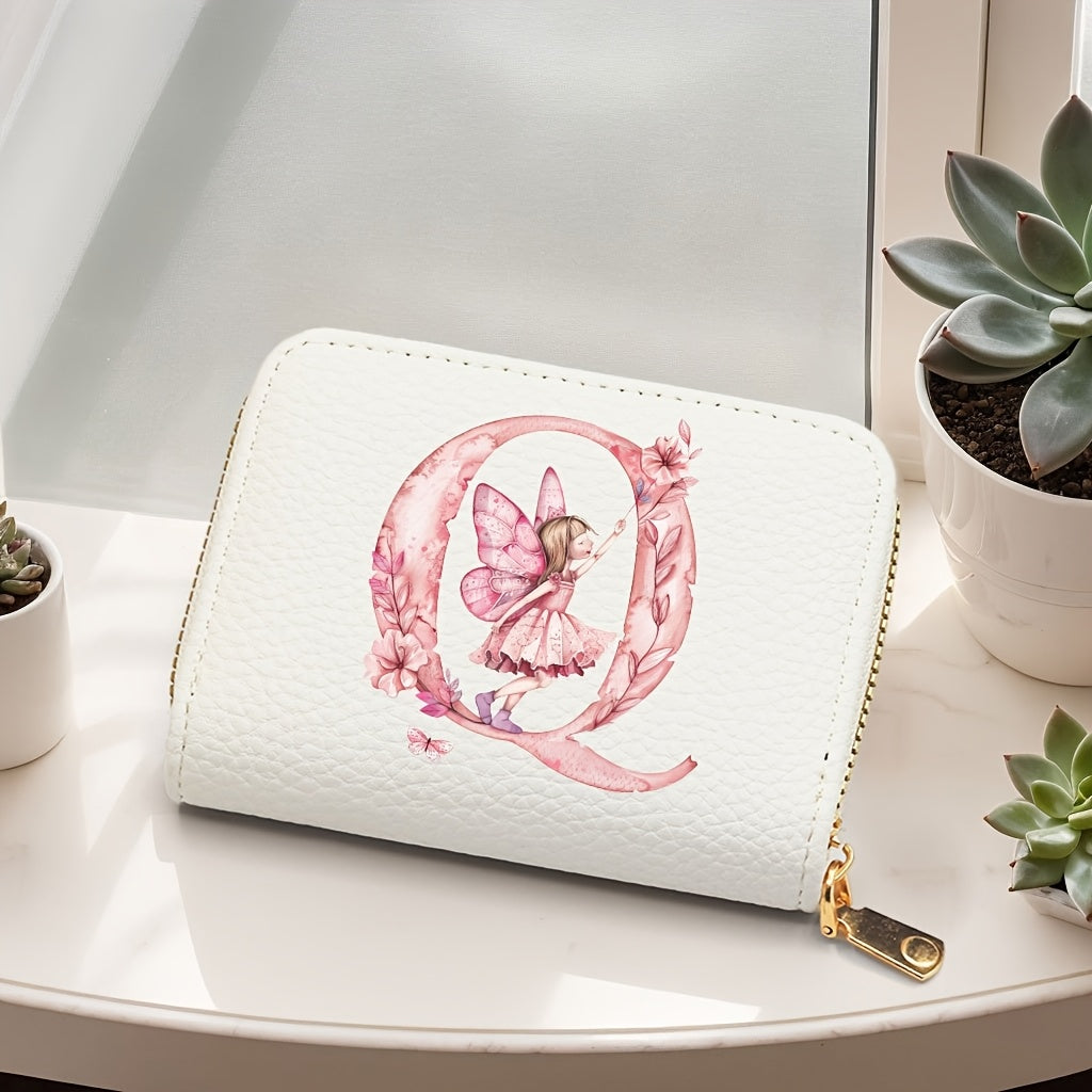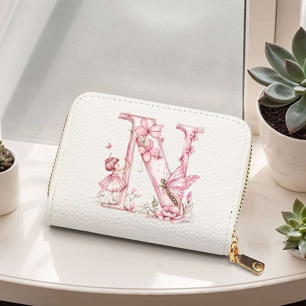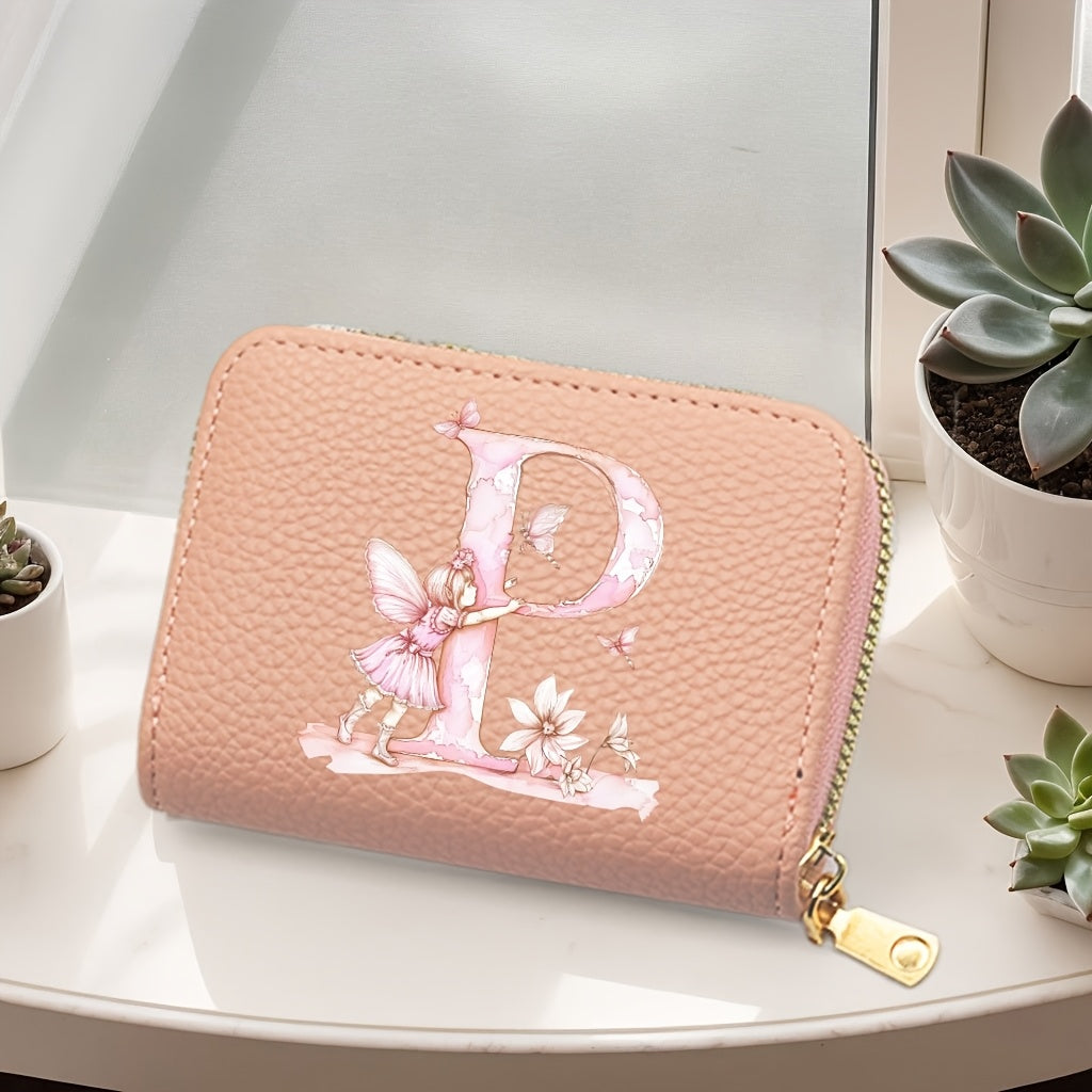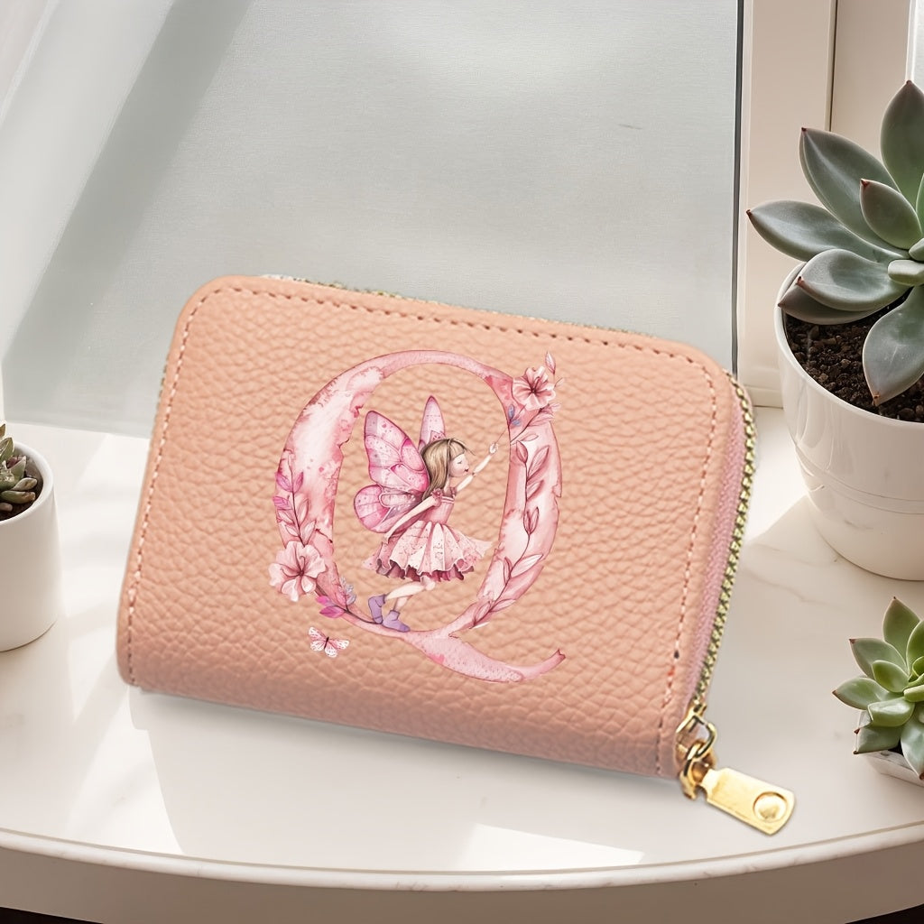 Tarjetero de mujer de cuero sintético, estilo acordeón delgado, con cierre de cremallera para monedas
