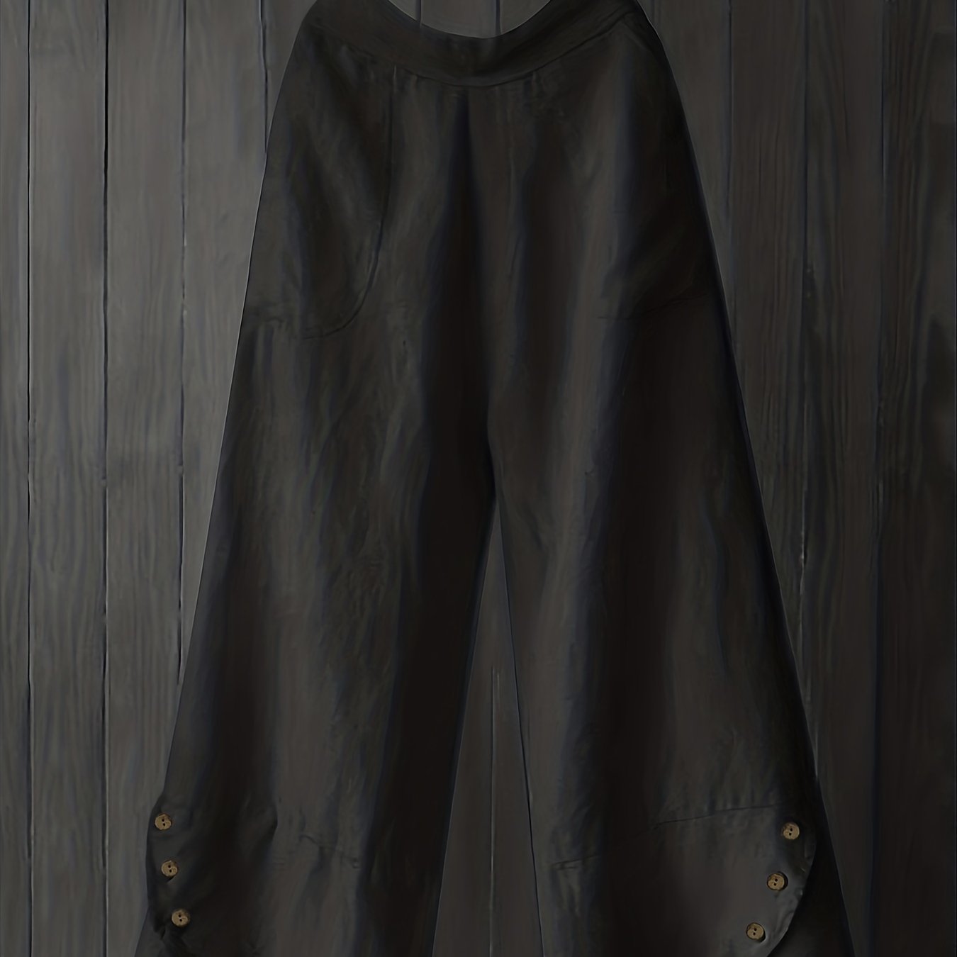 Pantalones de algodón de pierna ancha talla grande con bolsillos y detalles de botón