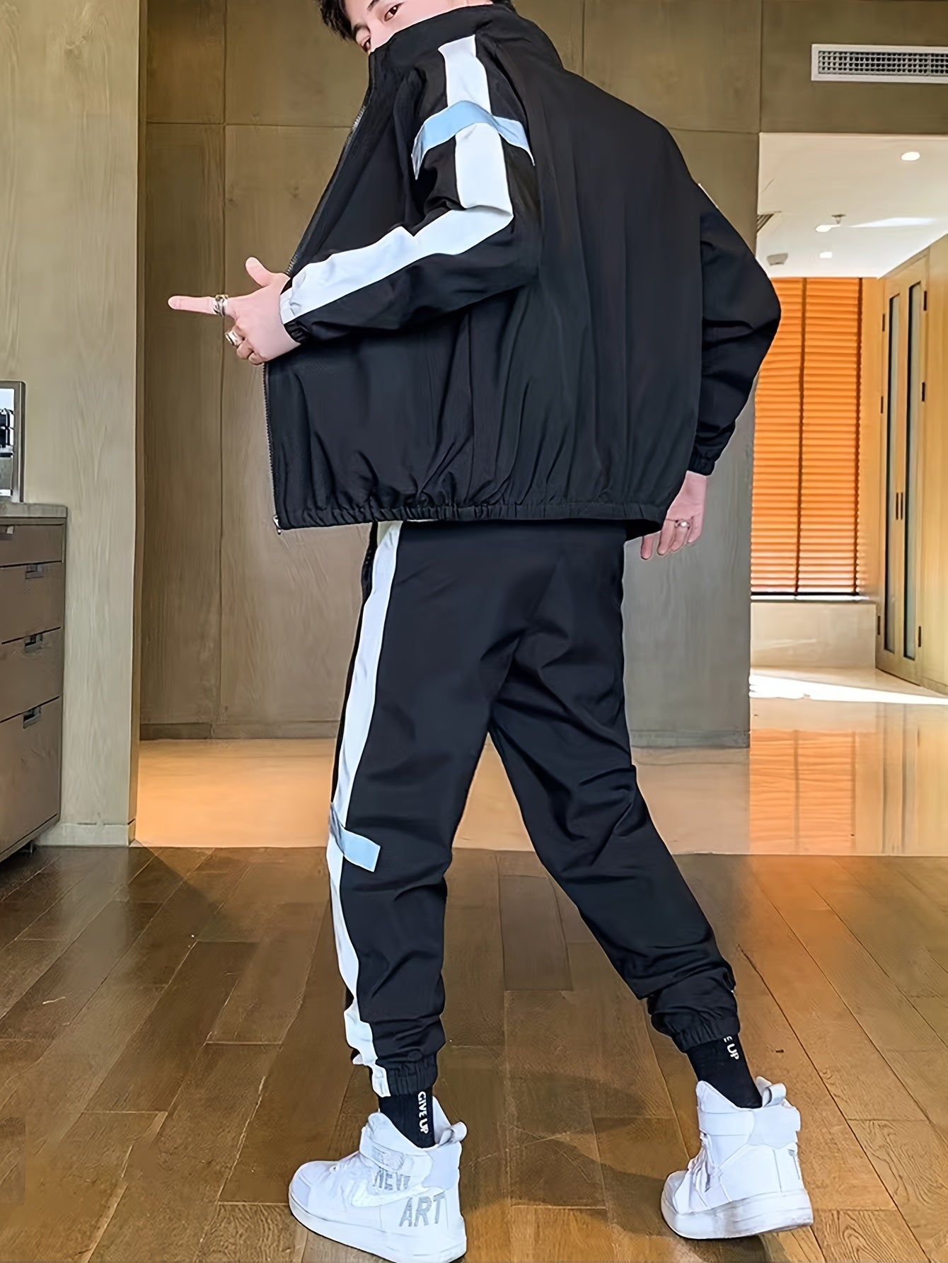 Conjunto de ropa deportiva casual para hombre, chaqueta de manga larga para primavera y otoño, conjunto de dos piezas de poliéster sólido