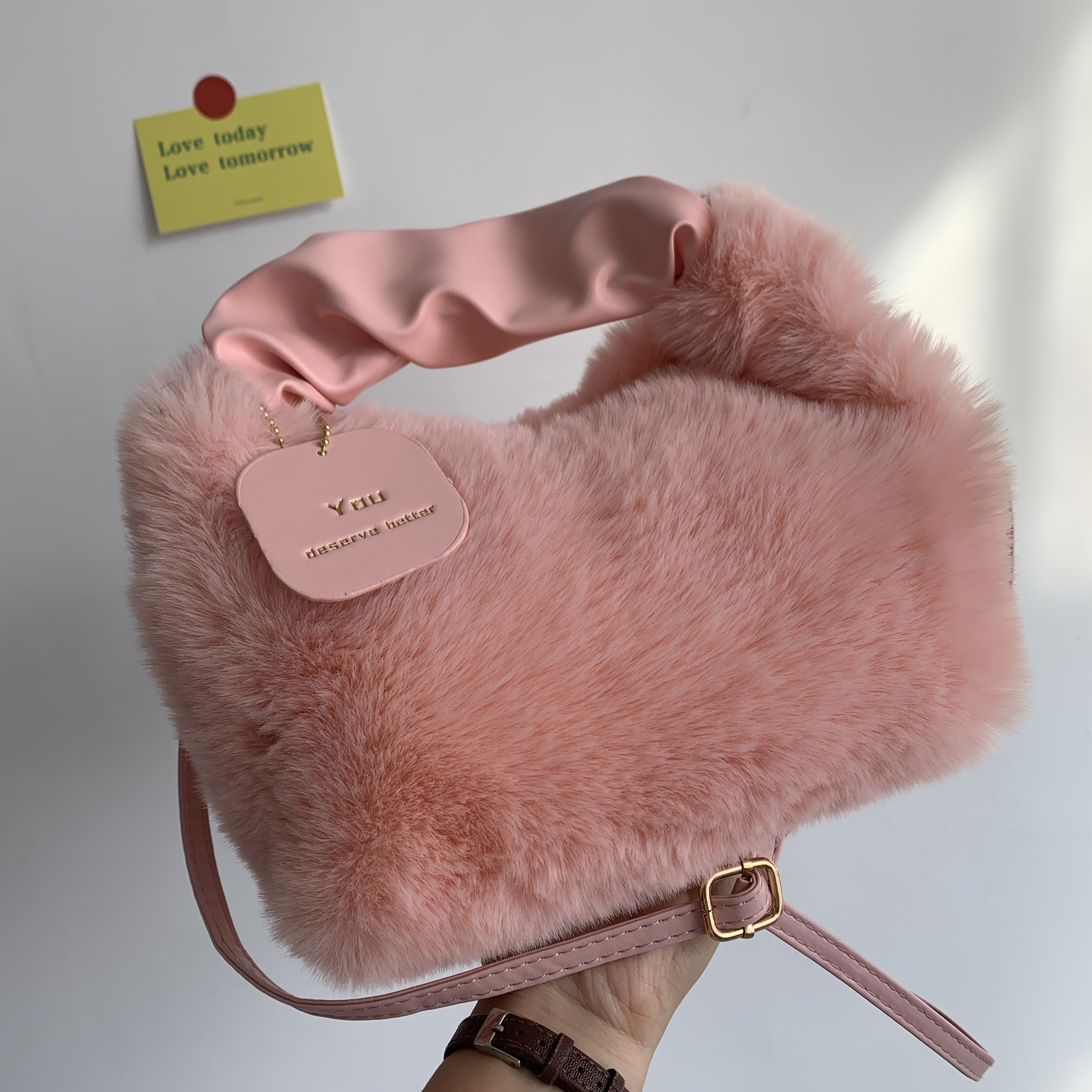 Bolso bandolera de pelo sintético para mujer con correa ajustable y cierre de cremallera en caqui gris rosa crema