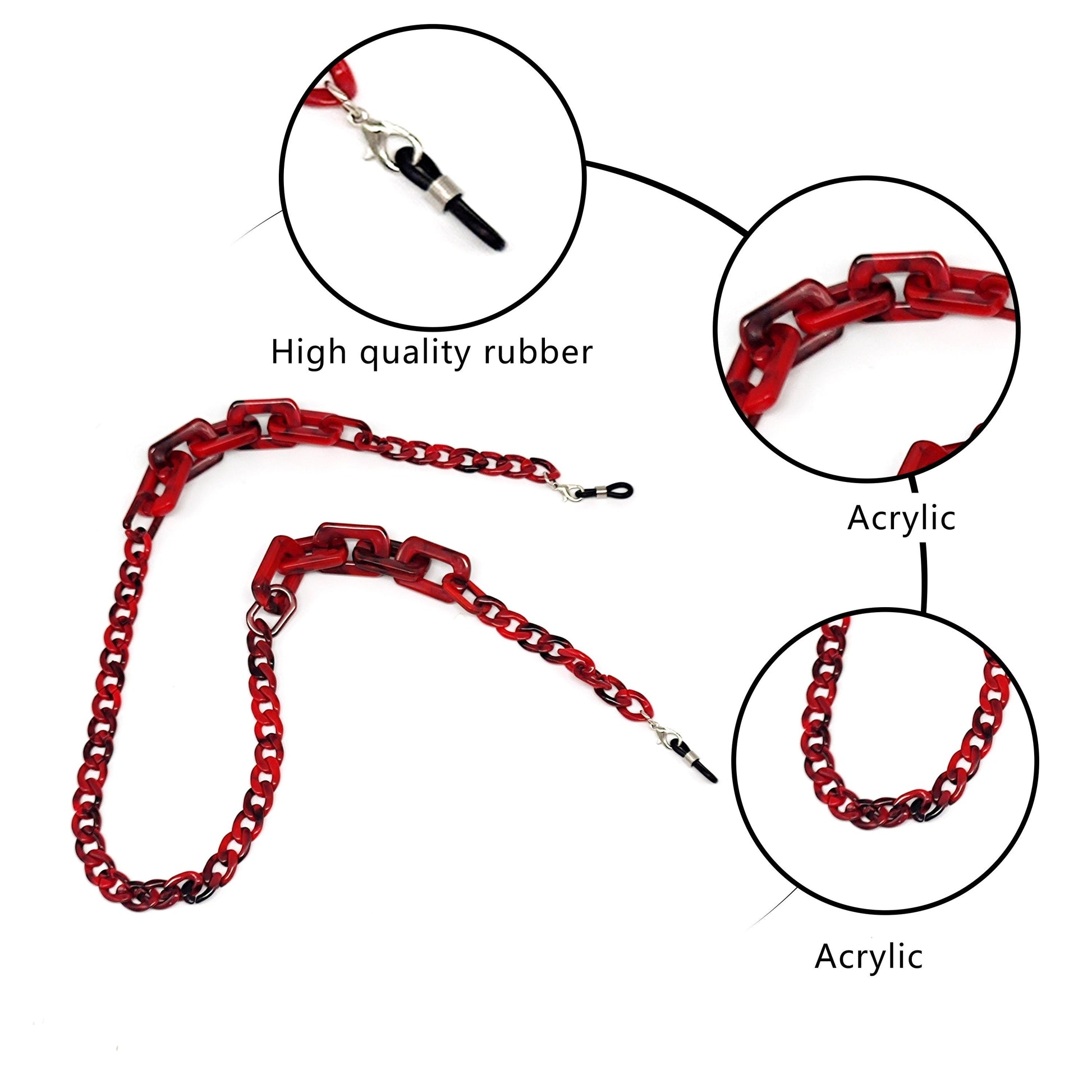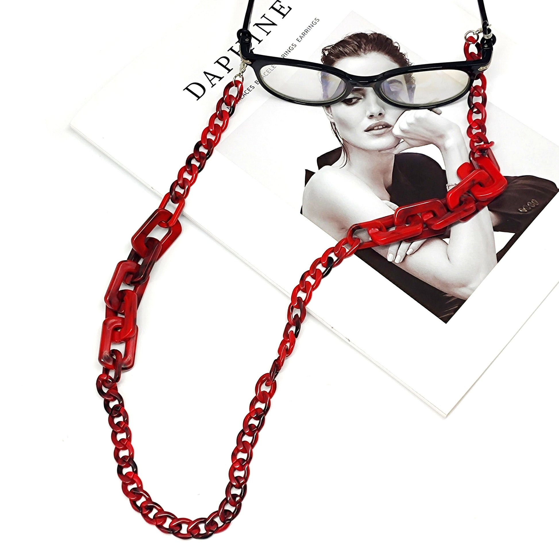 Cadena de gafas de acrílico grueso estilo retro chic con extremos de goma para gafas y gafas de lectura