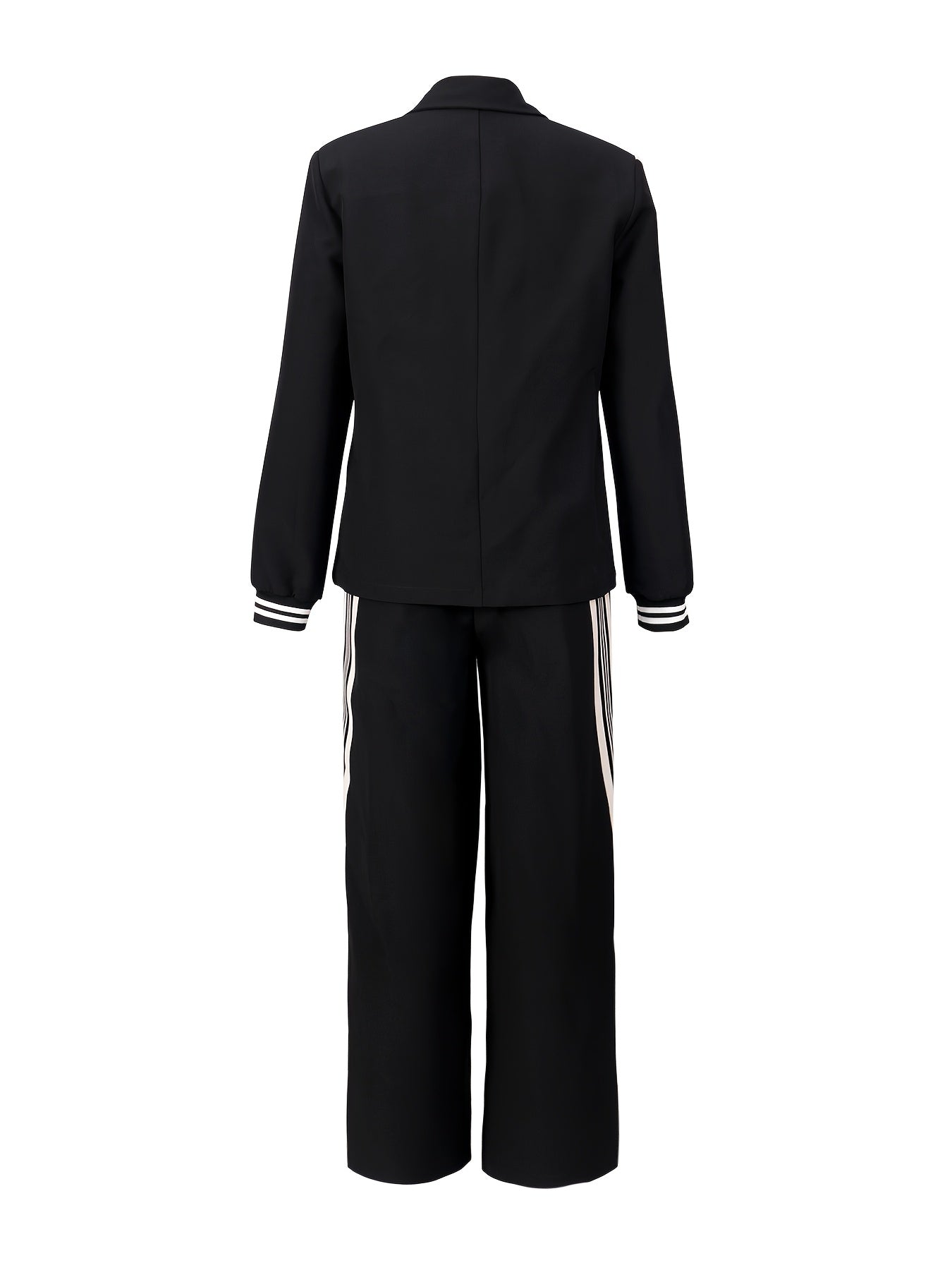 Conjunto de dos piezas para mujer con cinturón de tejido a rayas y cuello de solapa