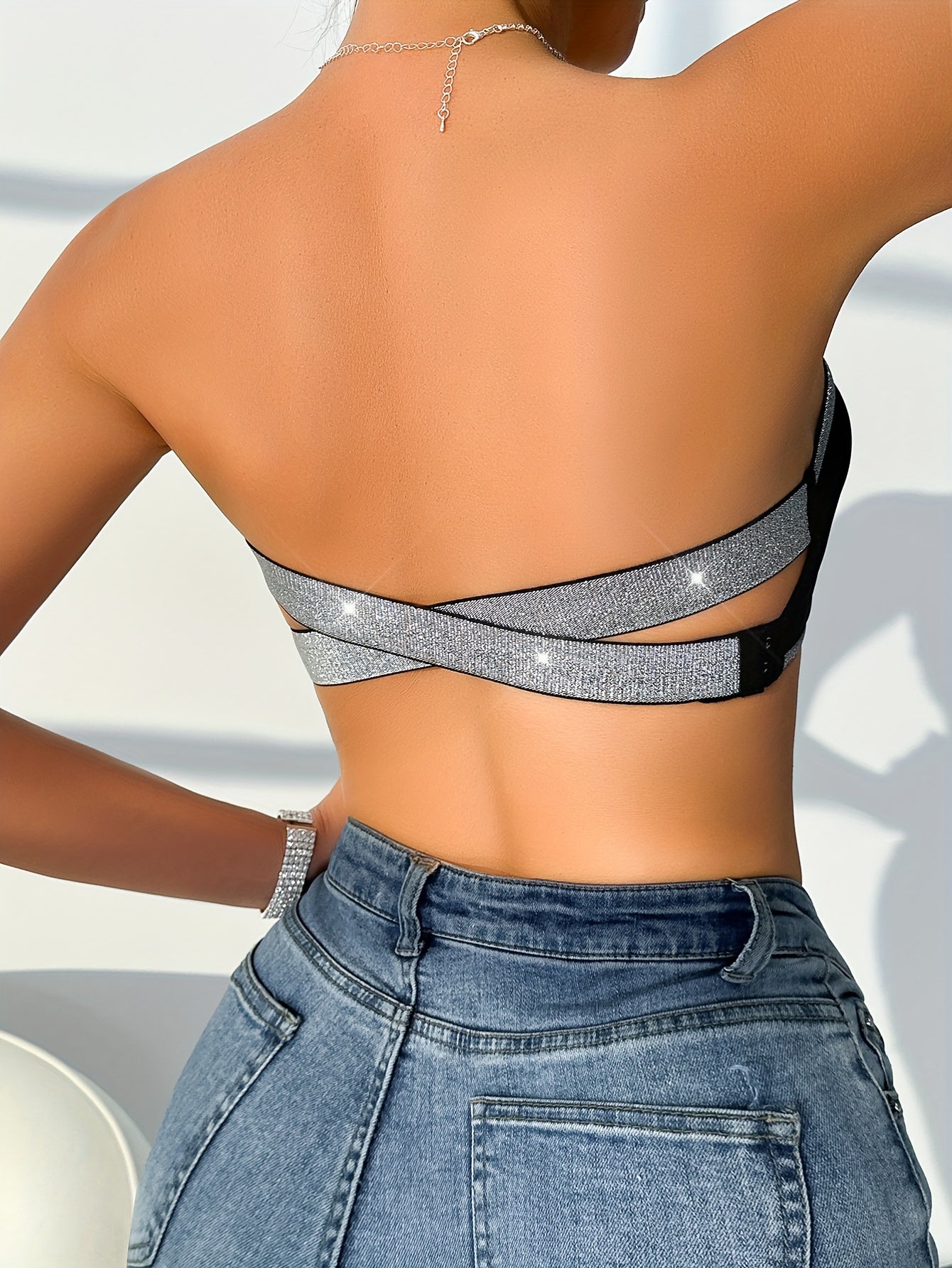 Sujetador bralette inalámbrico con detalle de purpurina, nylon sin costuras, elastano, lavable a mano