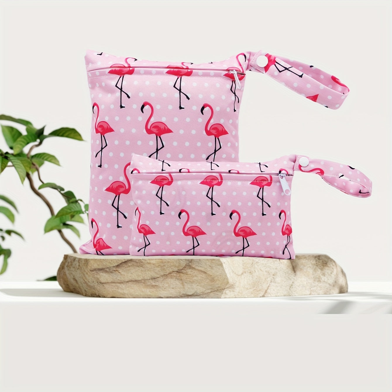 Juego de 2 bolsas impermeables húmedo-seco con estampado de flamenco para pañales, viajes y lavandería