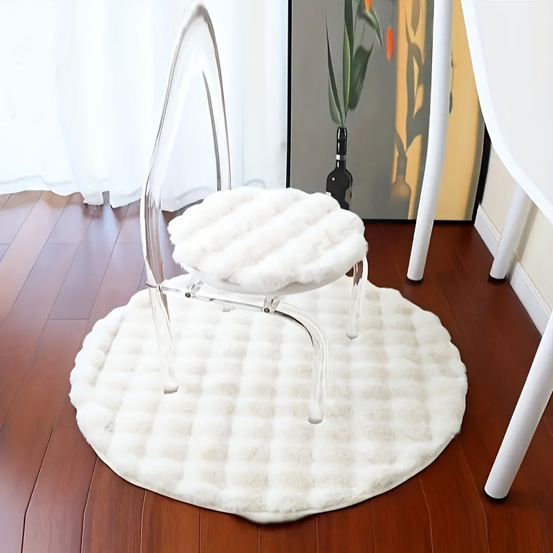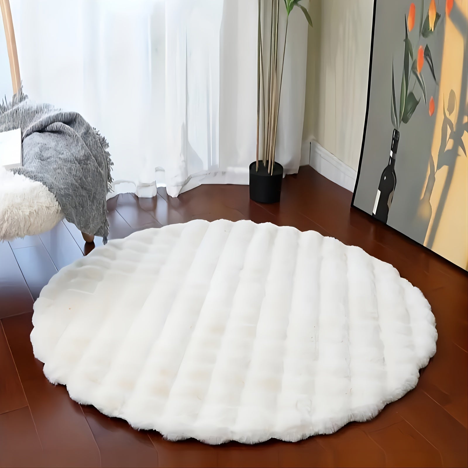 Alfombra redonda de felpa lujosa, ultra suave, antideslizante, con textura acanalada, blanca o rosa