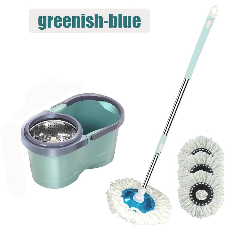 Juego de fregona y cubo con 4 cabezales de microfibra para limpiar suelos
