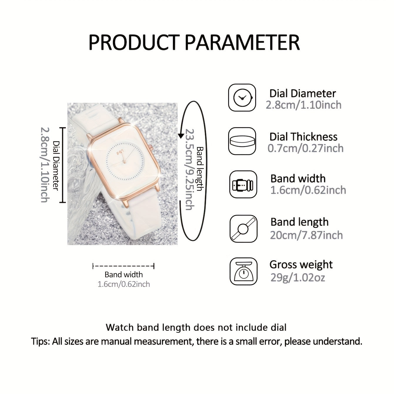 Set de reloj de pulsera de cuarzo con esfera cuadrada y banda de silicona para mujer, con caja de aleación de zinc y diseño de tres piezas