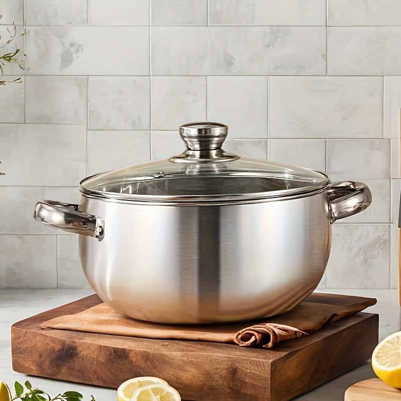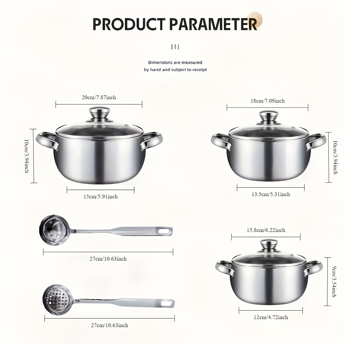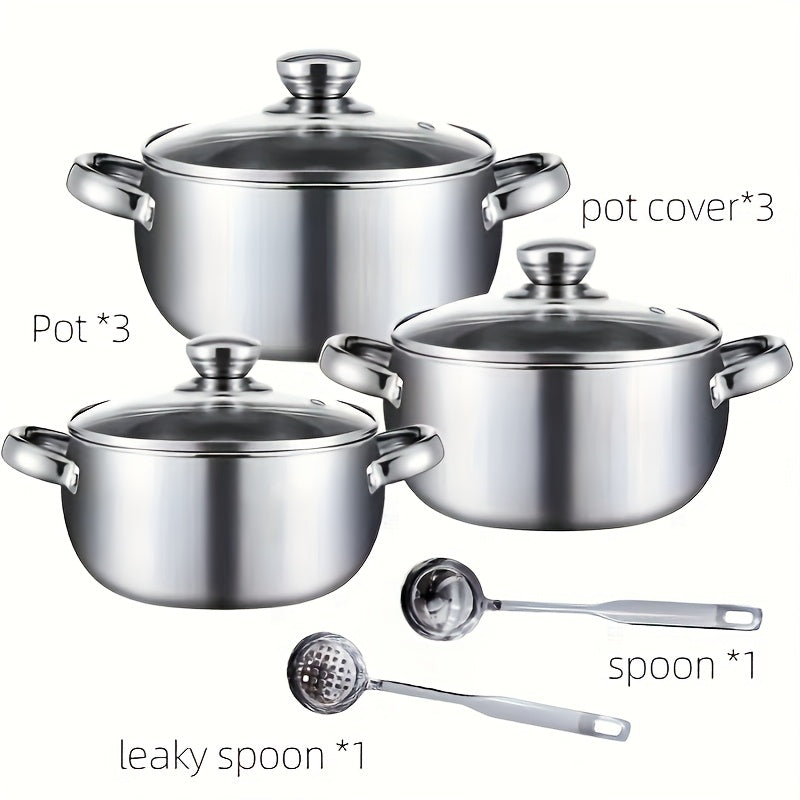 Juego de 8 piezas de ollas de acero inoxidable para sopa con tapas y cucharas para gas y inducción