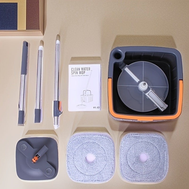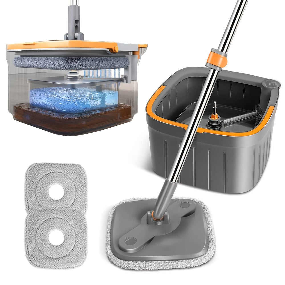 Juego de fregona cuadrada con cubo y 2 paños para limpiar madera, baldosas y mármol