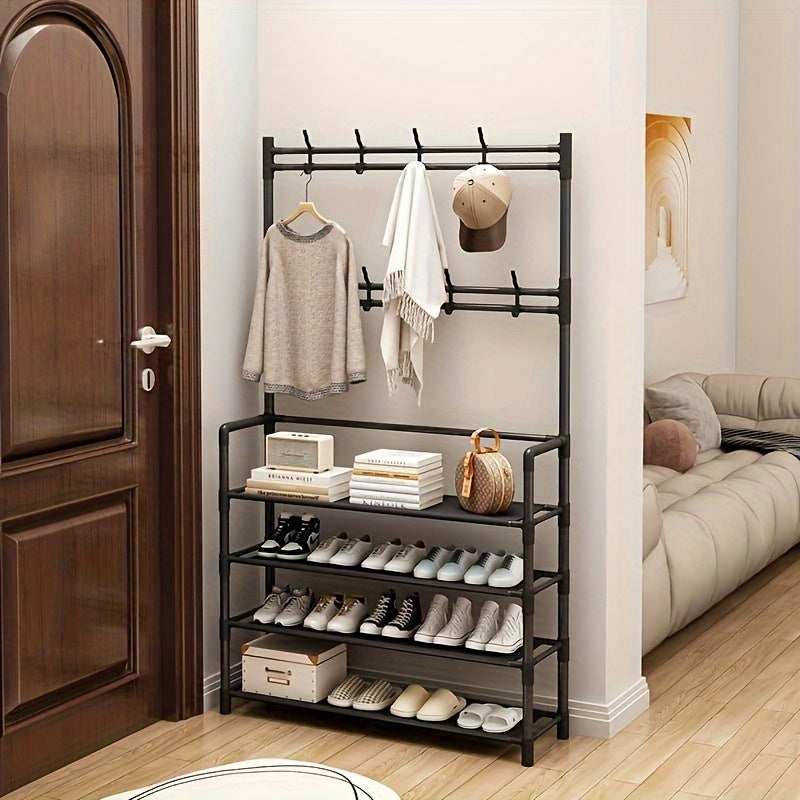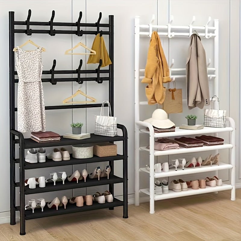 Estante metálico para zapatos en la entrada de 80cm con 8 ganchos para zapatos, bufandas y sombreros