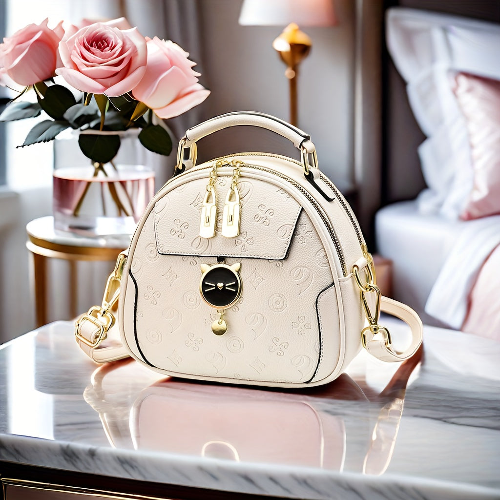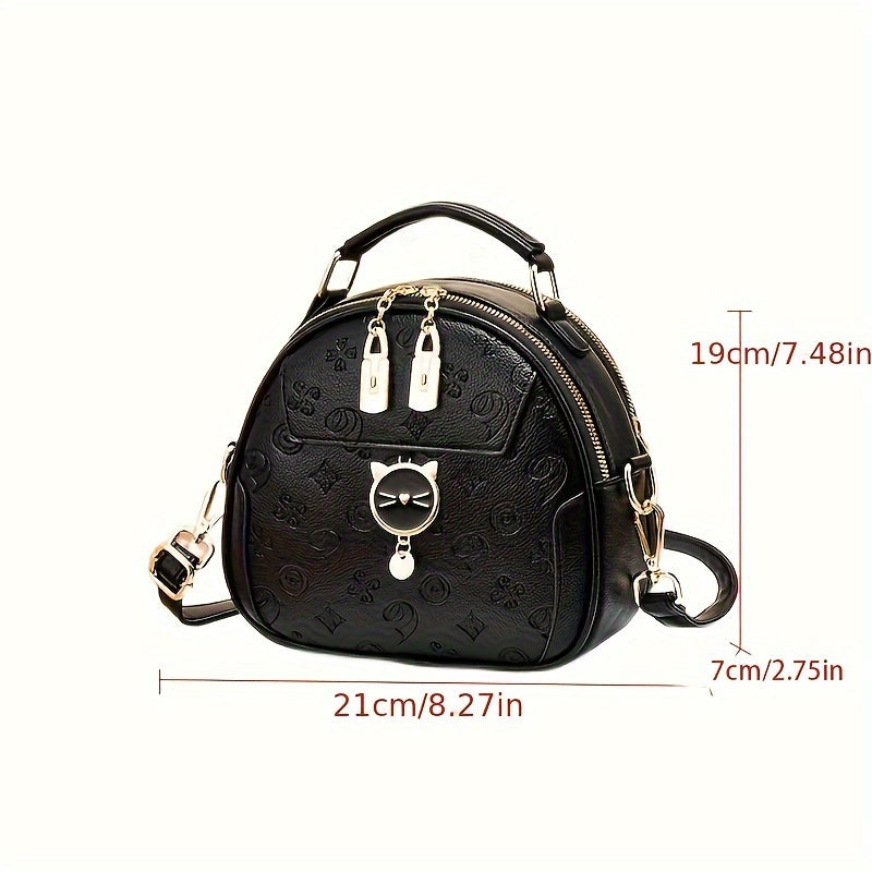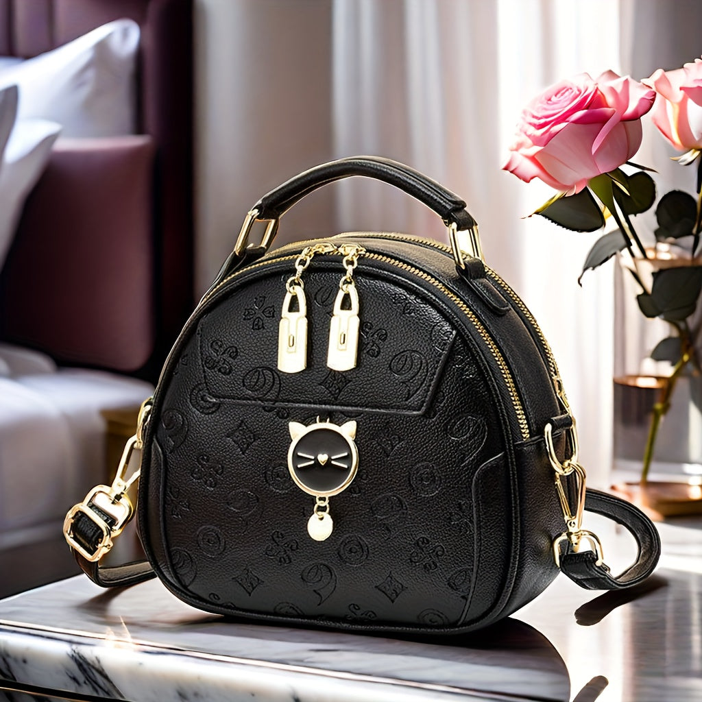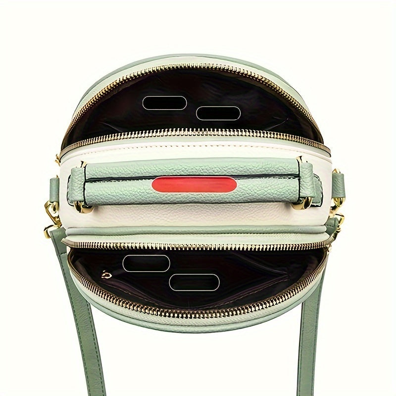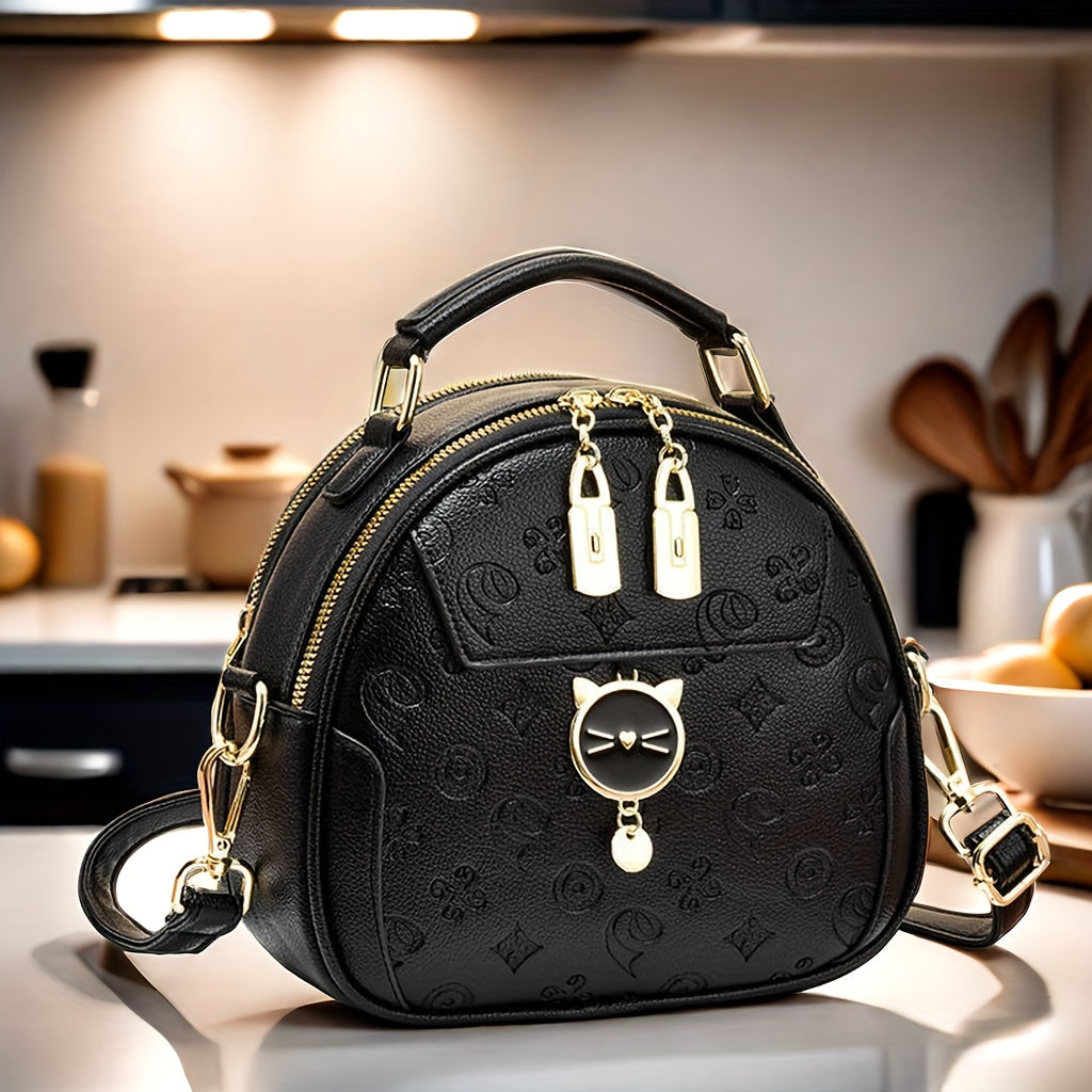 Bolso cruzado redondo negro para mujer con correa ajustable y cierre de cremallera