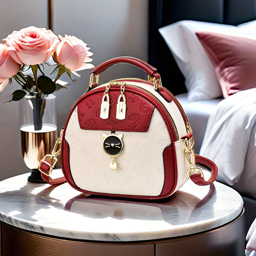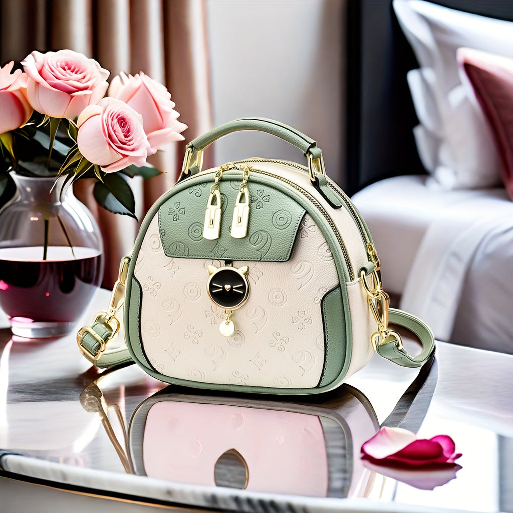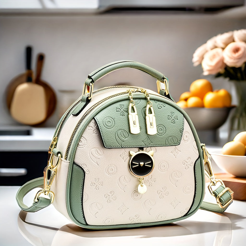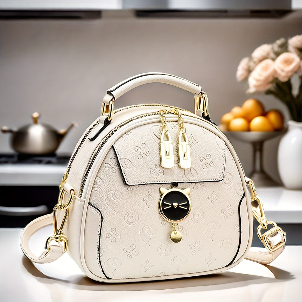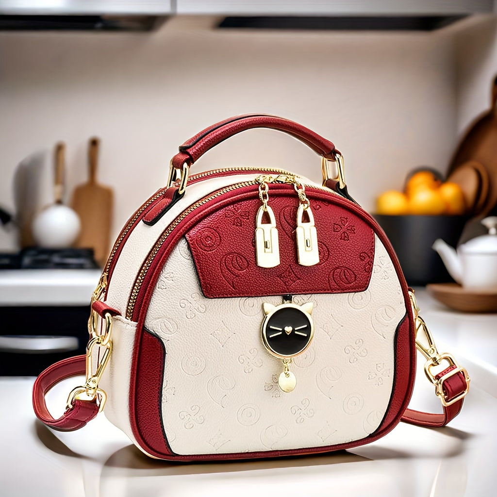 Bolso cruzado redondo negro para mujer con correa ajustable y cierre de cremallera