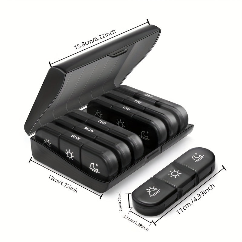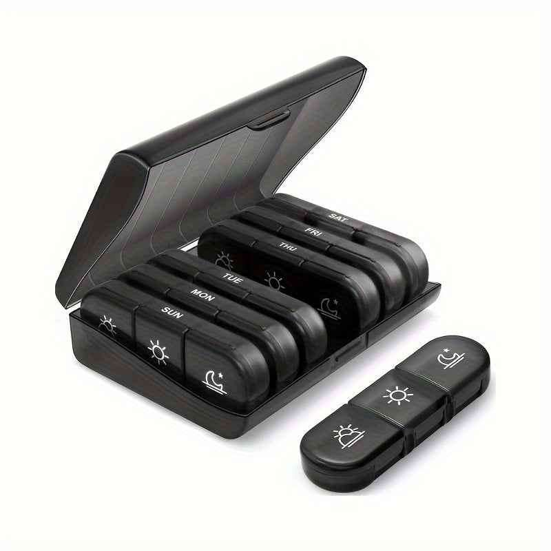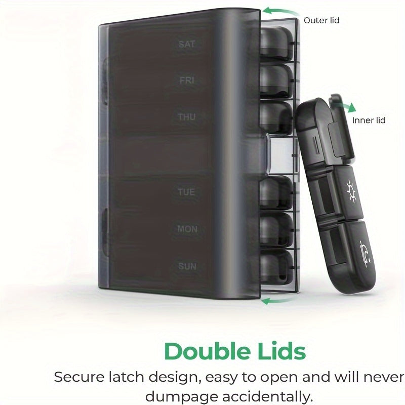 Organizador de pastillas de plástico unisex de 7 días, 14 compartimentos, fácil de presionar, arcoíris