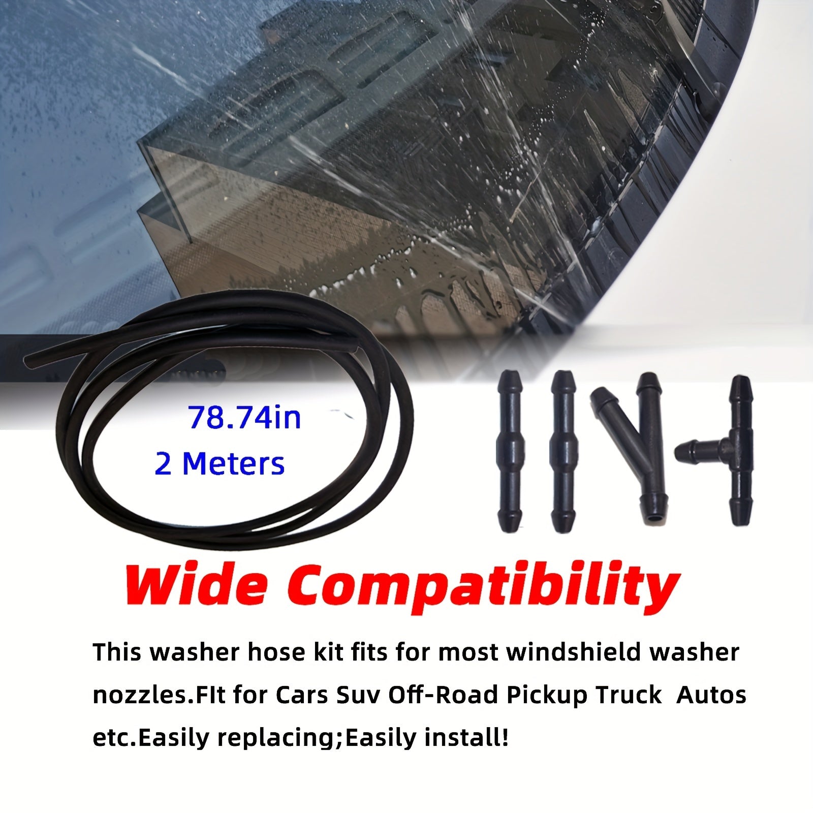Kit de manguera de lavado de parabrisas universal de 2M con 4 conectores para instalación de boquillas
