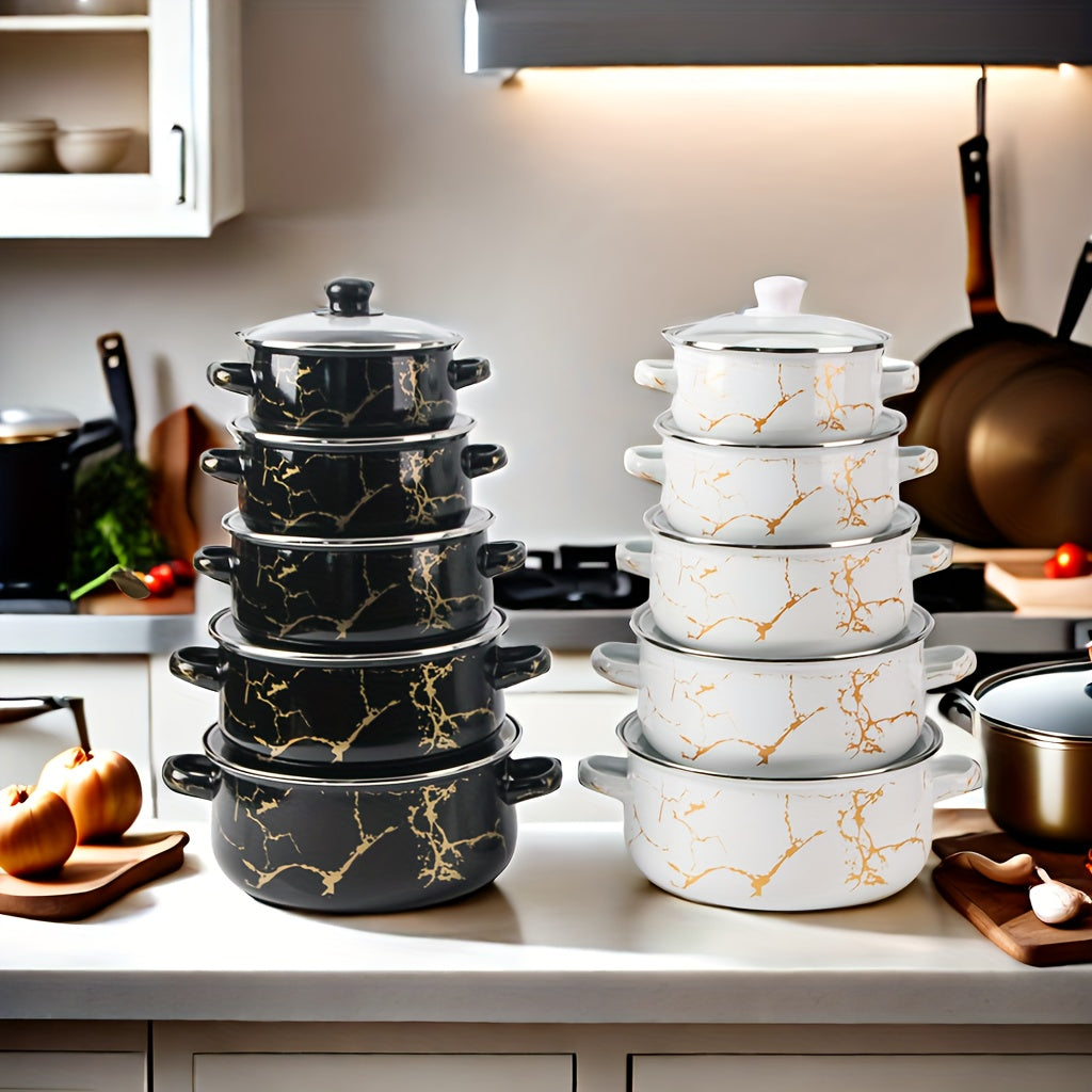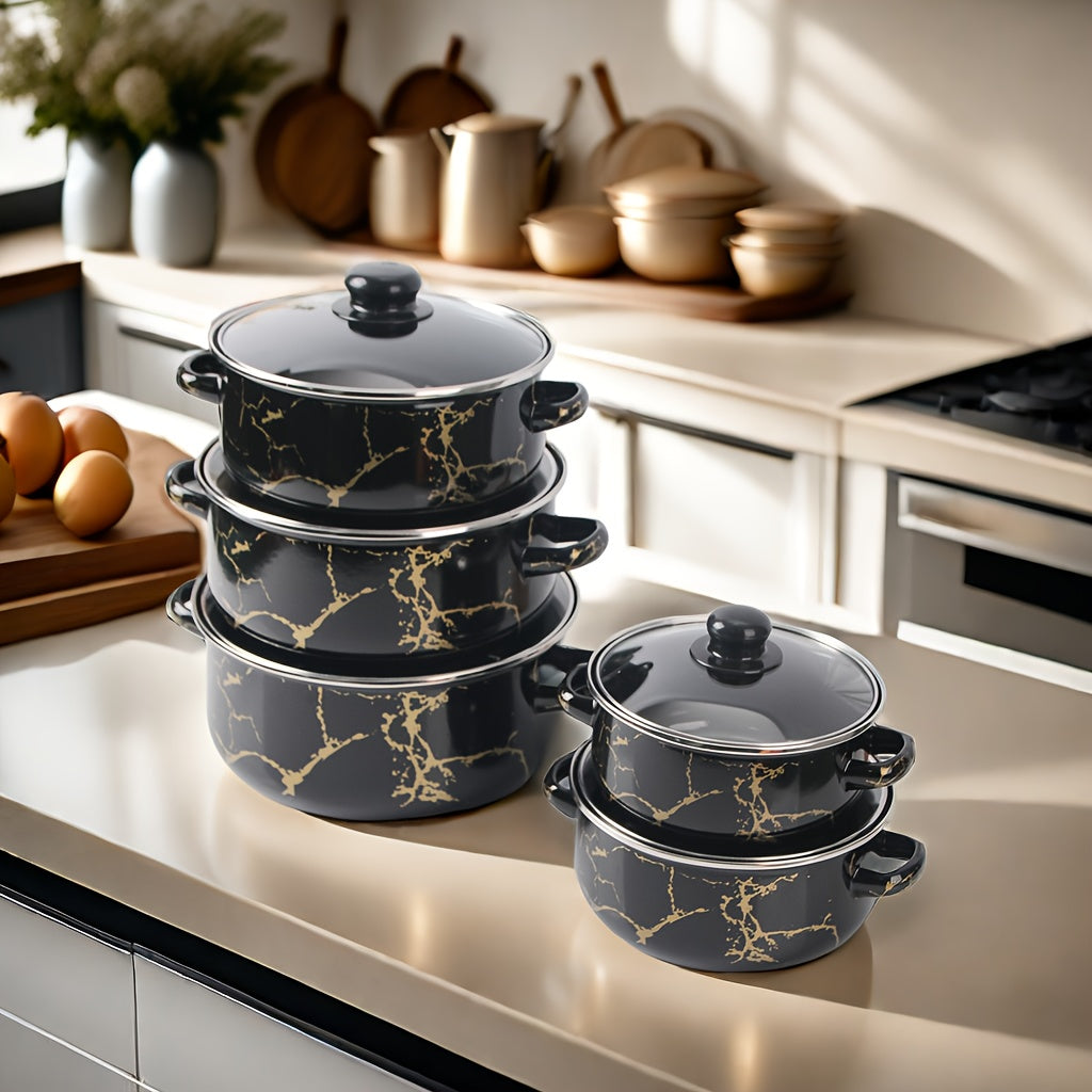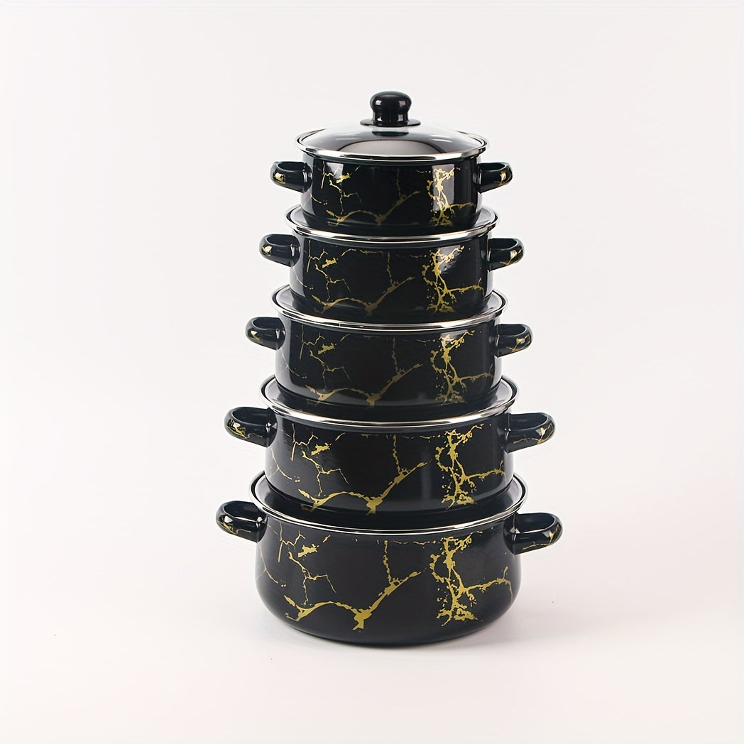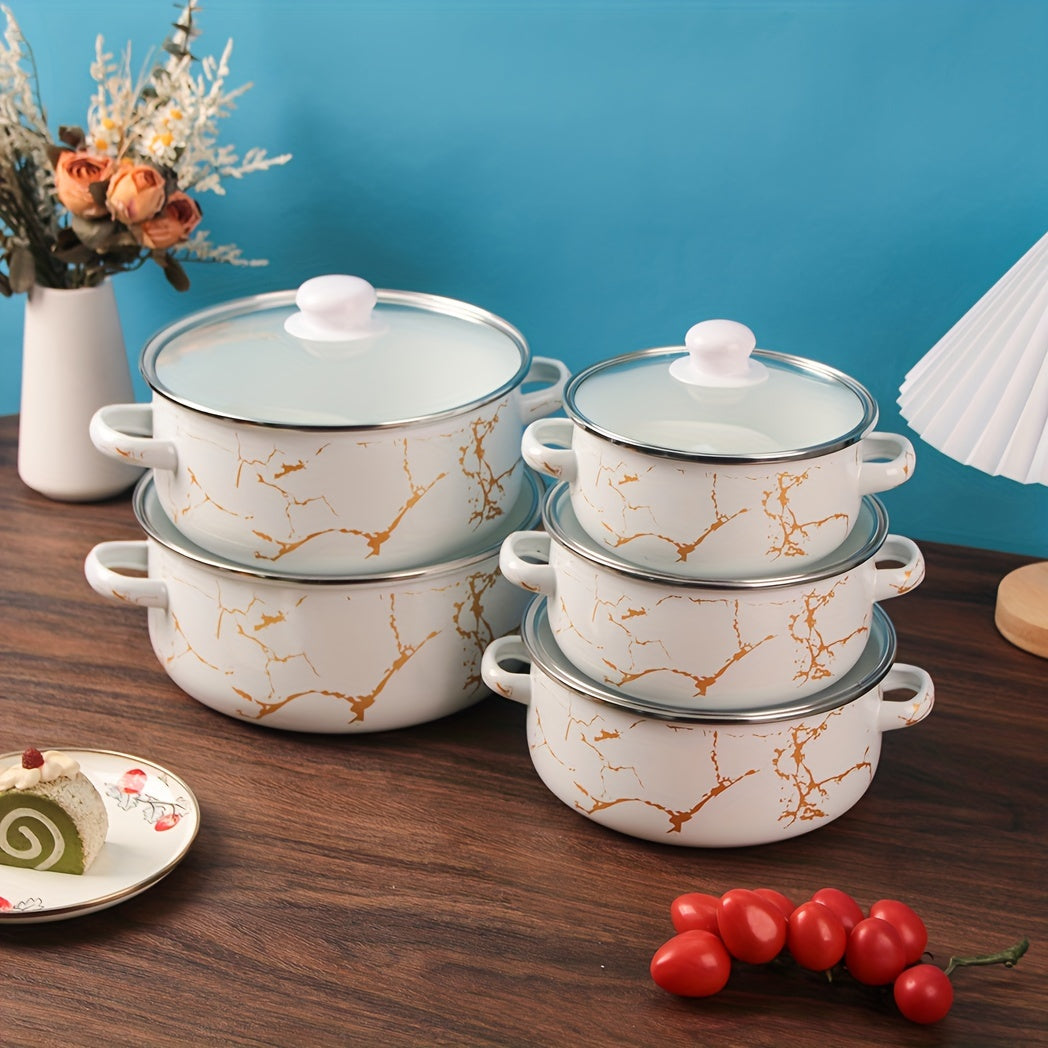Juego de utensilios de esmalte de 5 piezas, ollas y sartenes duraderas para cocinas de gas, inducción y llama abierta