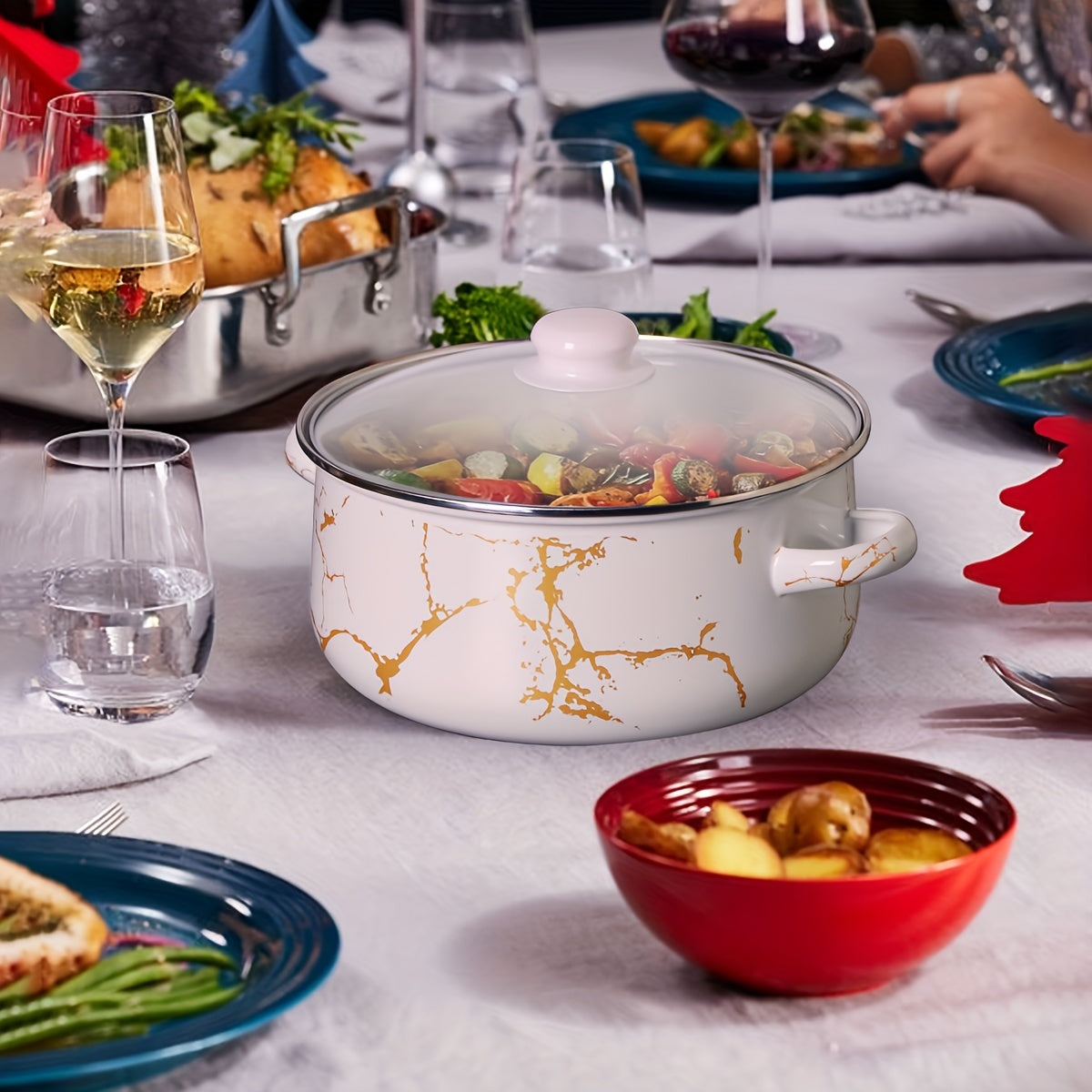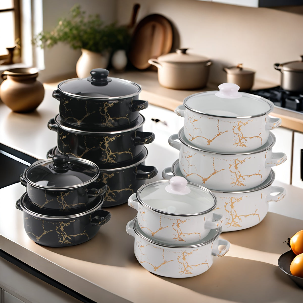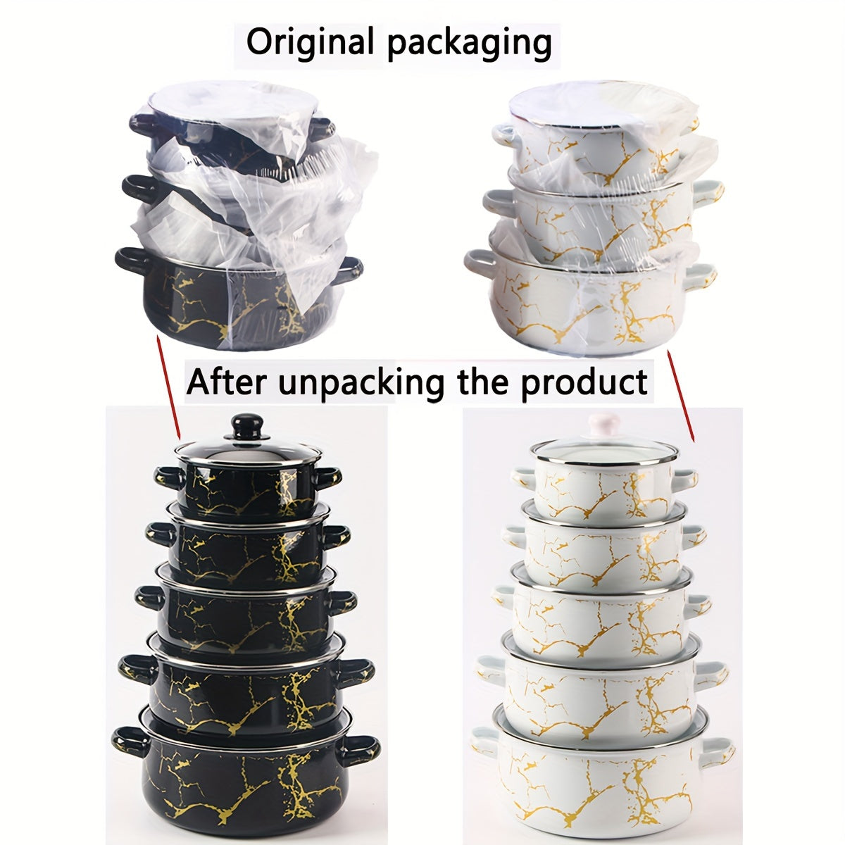 Juego de utensilios de esmalte de 5 piezas, ollas y sartenes duraderas para cocinas de gas, inducción y llama abierta