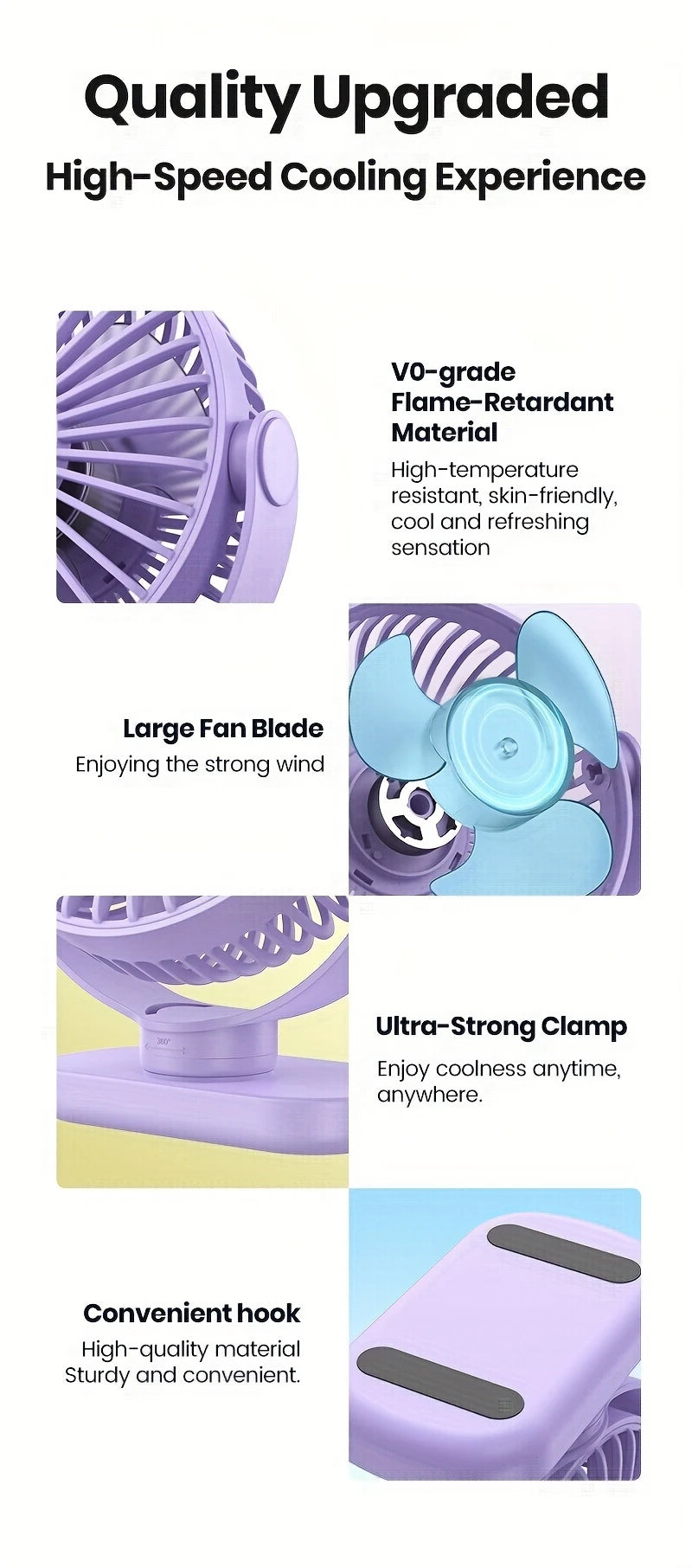 Ventilador de mesa con clip USB con motor sin escobillas, flujo de aire fuerte y silencioso, portátil, negro