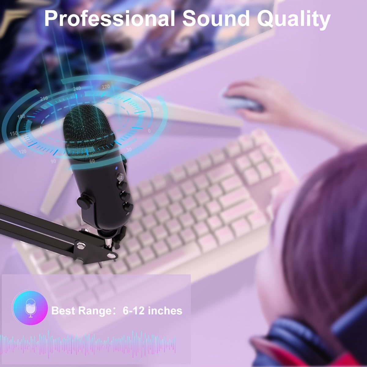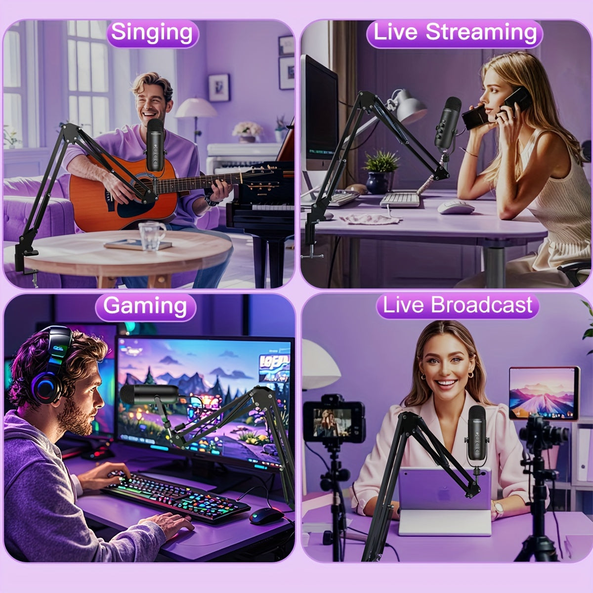 Kit de micrófono para juegos USB con brazo de soporte micrófono supercardioide botón de silencio eco volumen