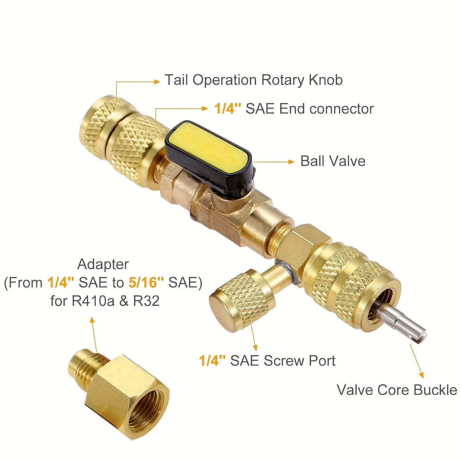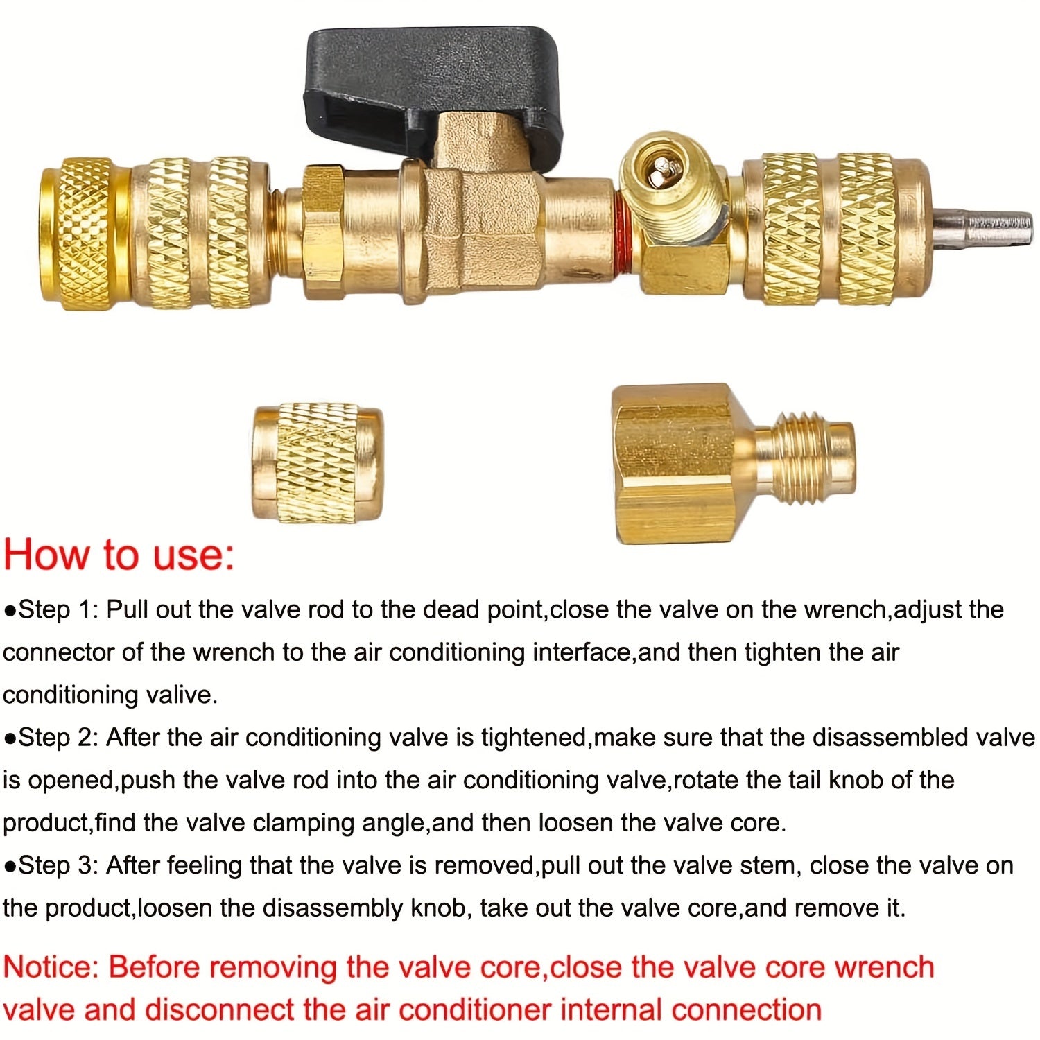Juego de extractores de válvula para sistemas de refrigeración de aire acondicionado, herramienta de reparación doméstica de 1/4 de pulgada SAE