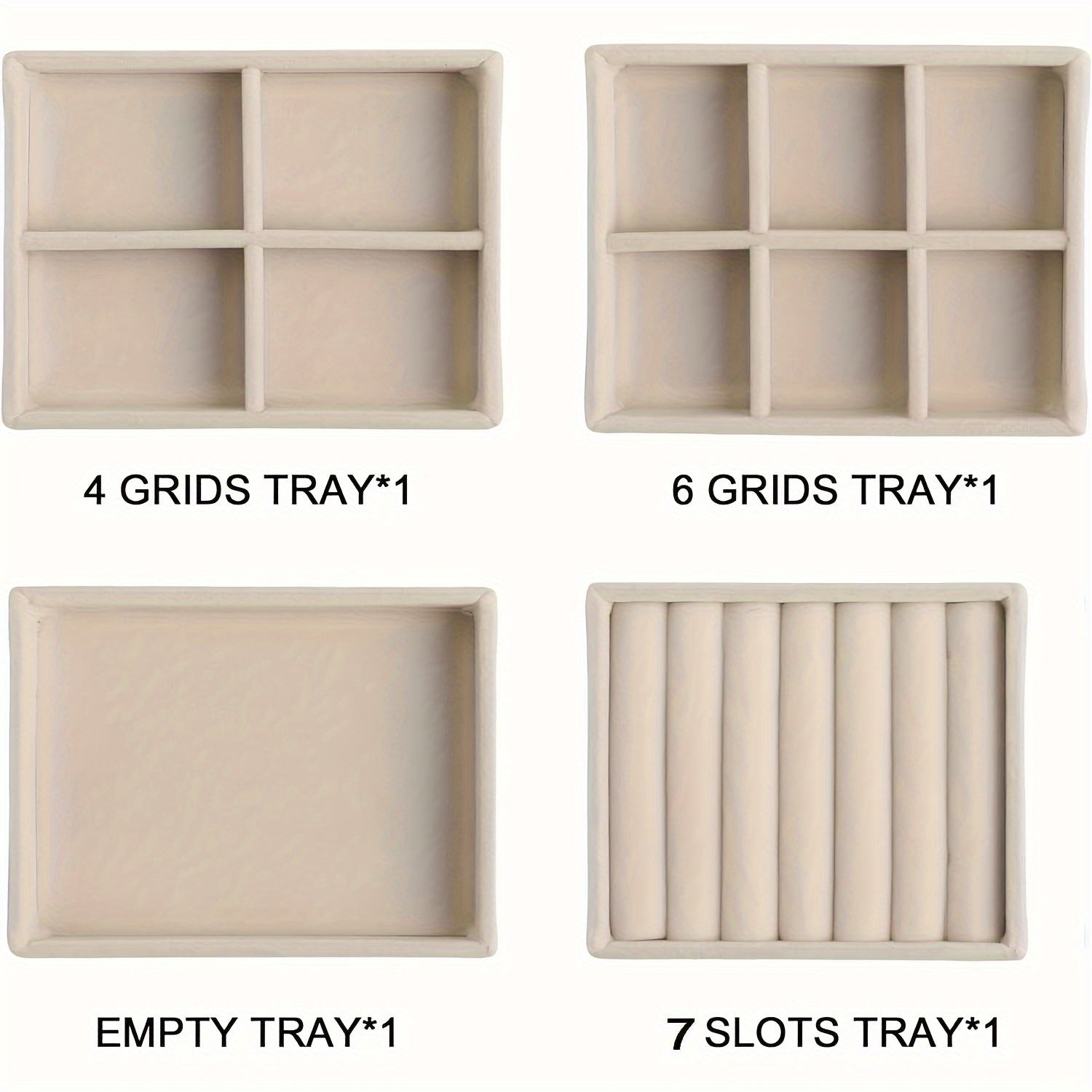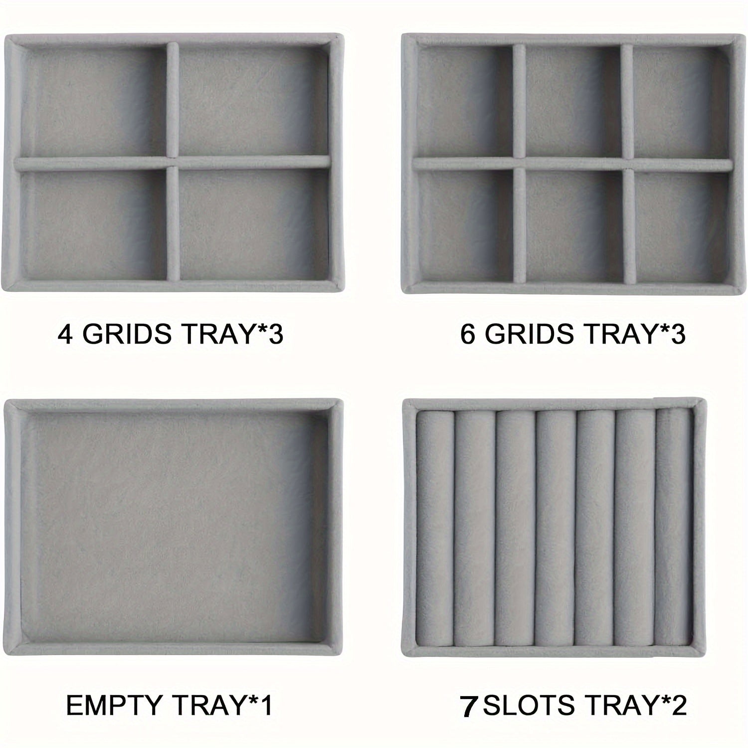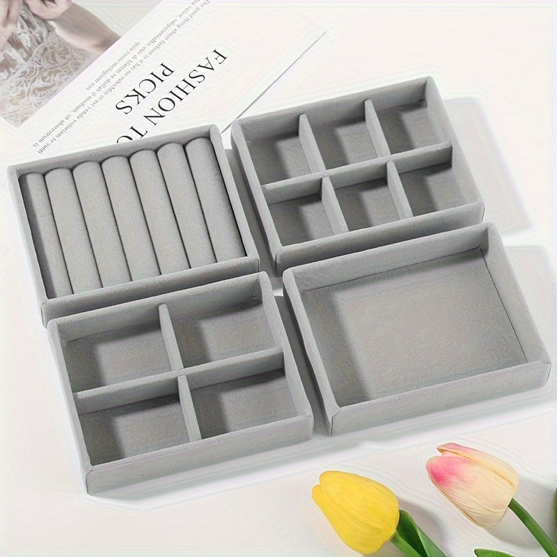 Juego de organizadores de bandejas de joyería de terciopelo, cuatro insertos apilables de gamuza para cajones para pendientes, anillos, collares