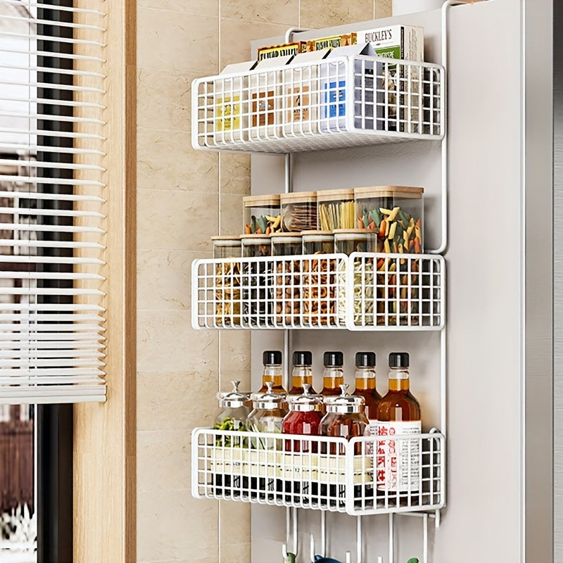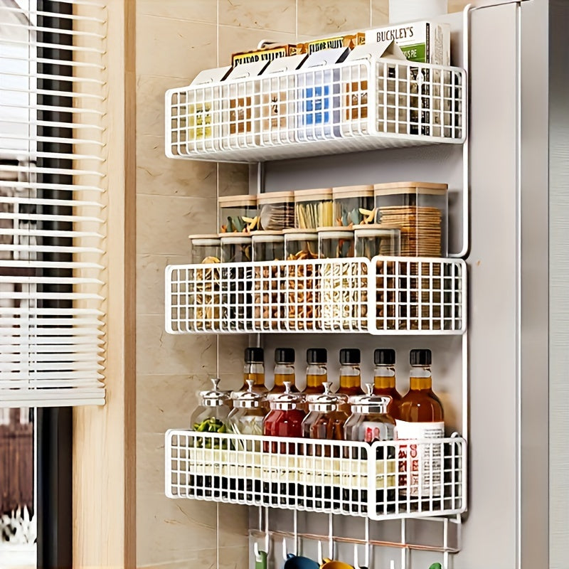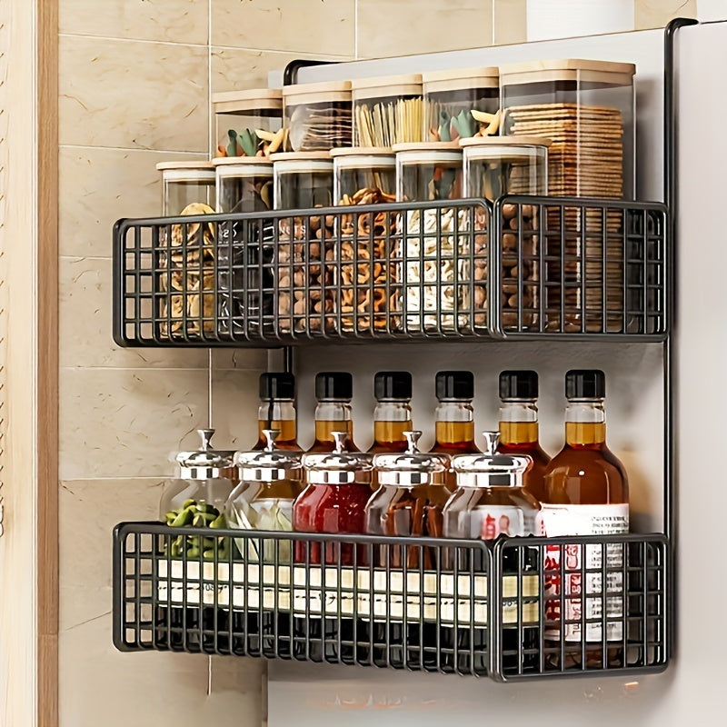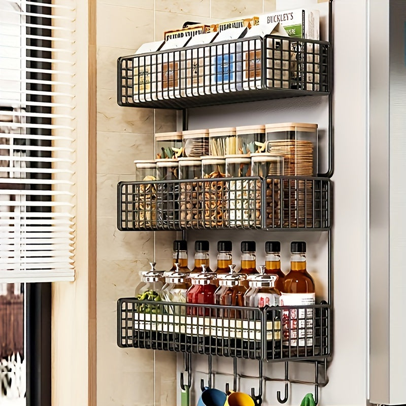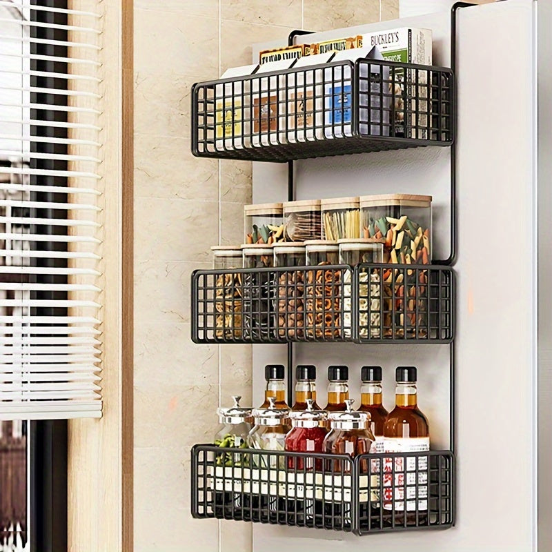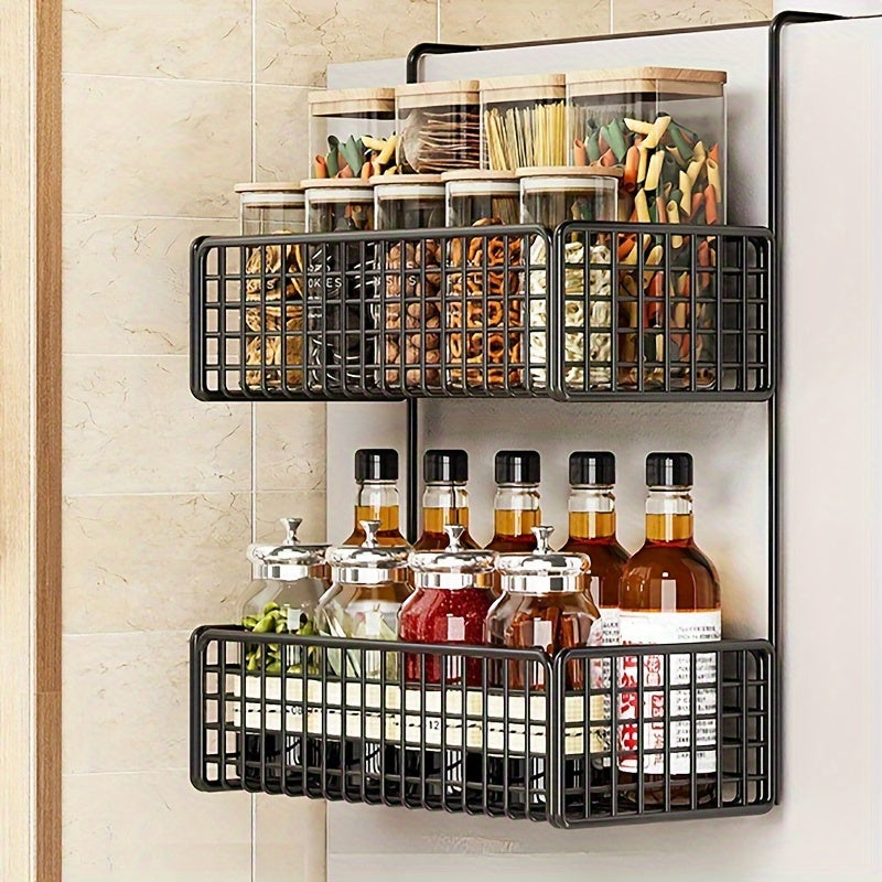 Estante de almacenamiento de cocina de metal de múltiples capas con soporte para film transparente y montaje en pared