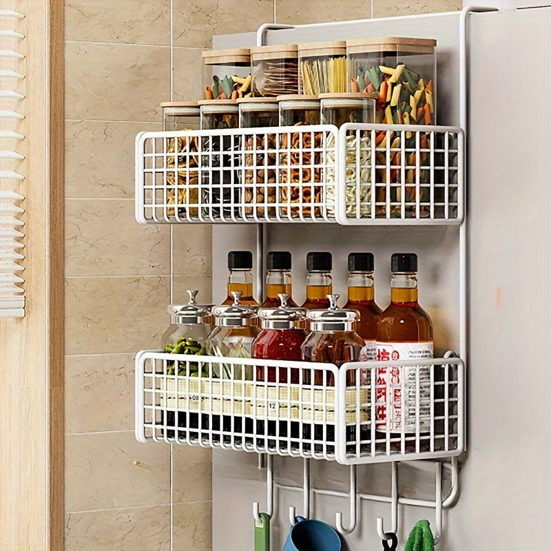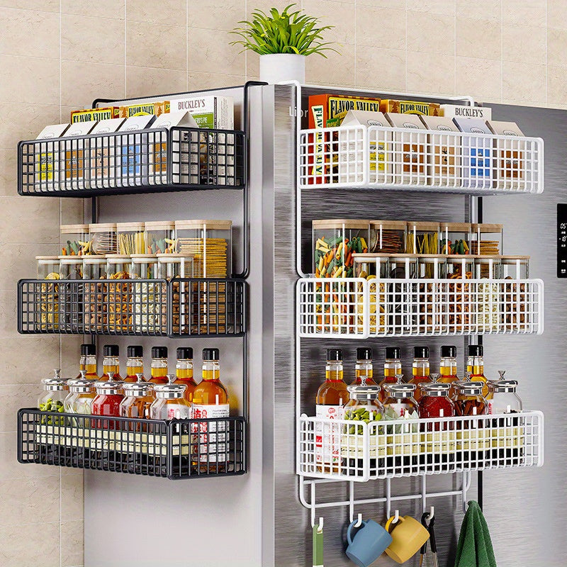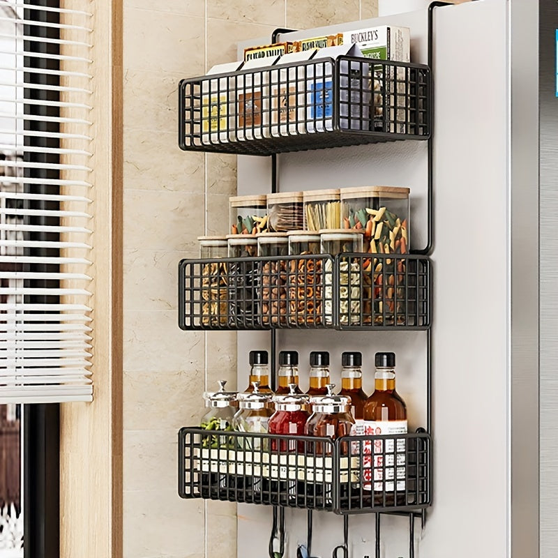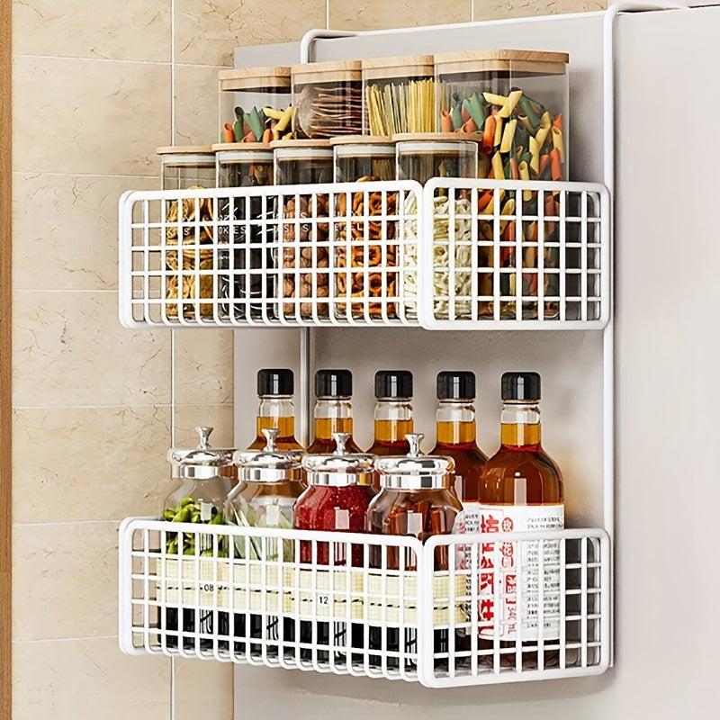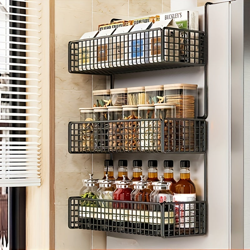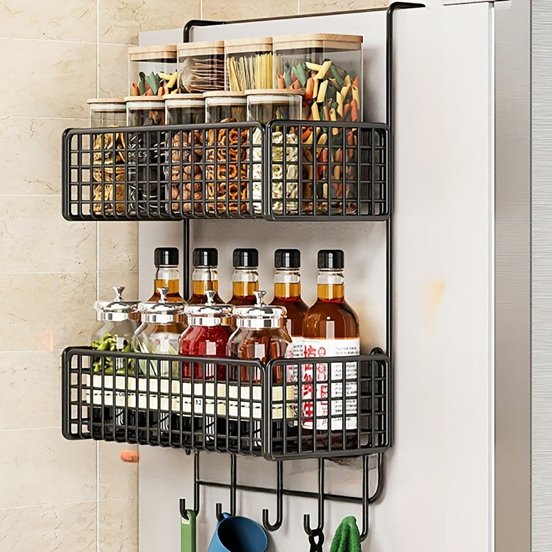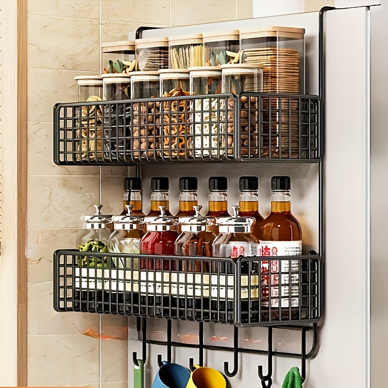 Estante de almacenamiento de cocina de metal de múltiples capas con soporte para film transparente y montaje en pared
