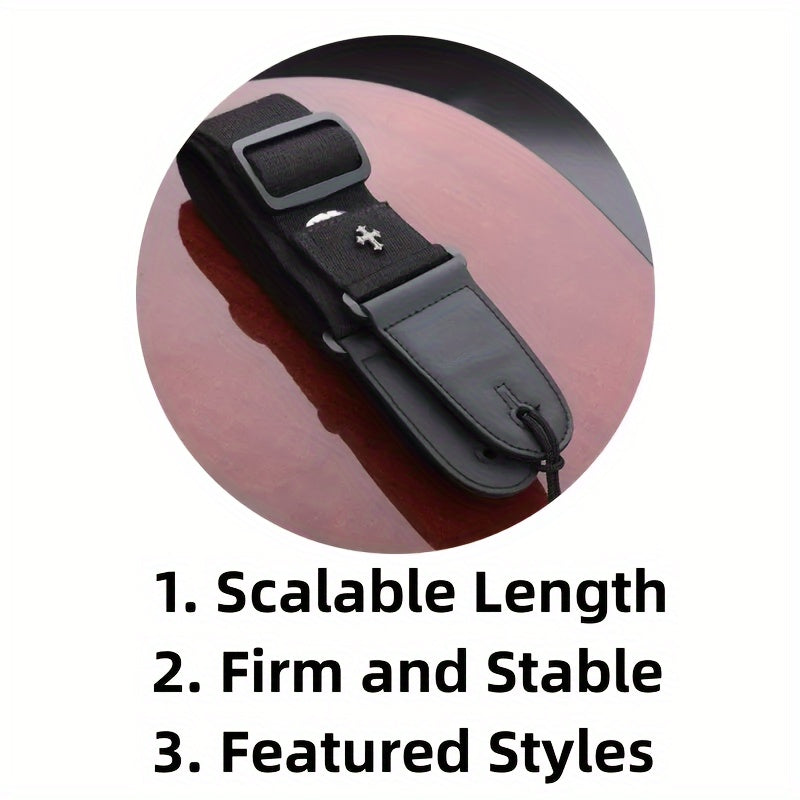 Correa de guitarra eléctrica con patrón de cruz vintage y bolsillo para púas para guitarra acústica, folk, bajo, ukelele