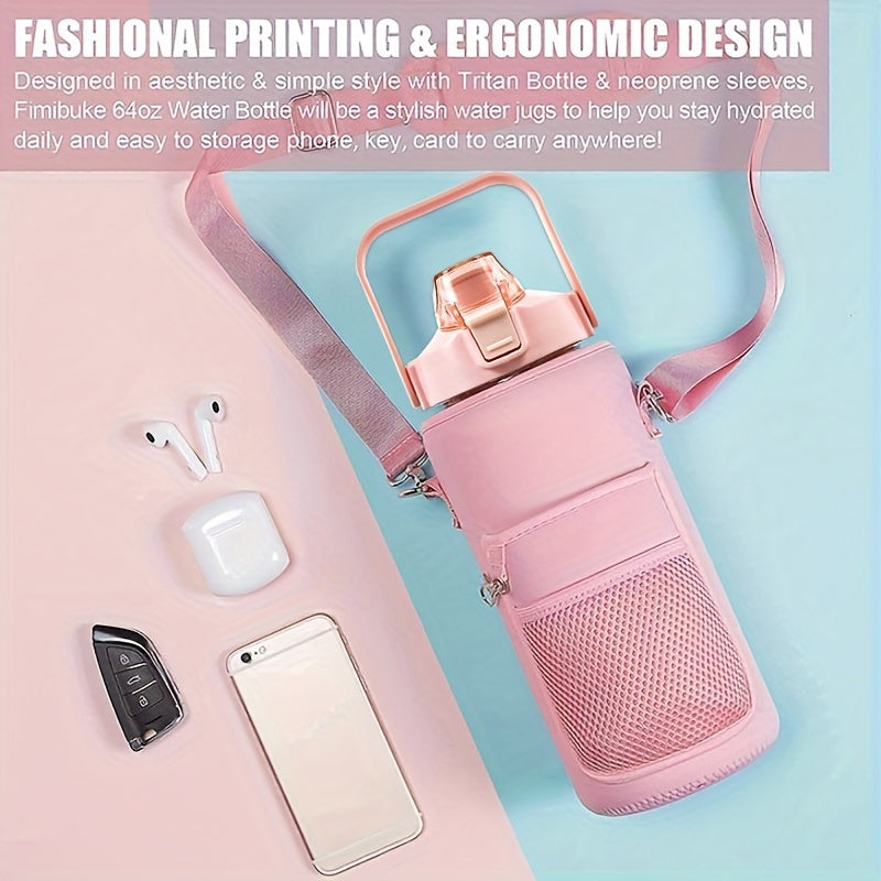Botella de agua deportiva de 70oz de uso intensivo, a prueba de fugas, libre de BPA, con funda y pajita