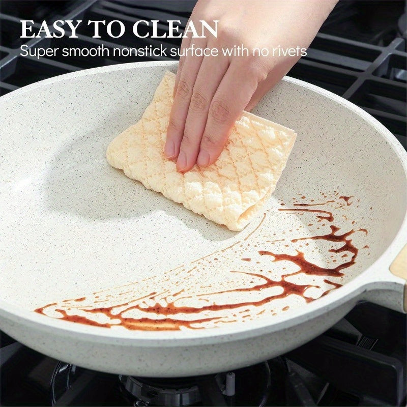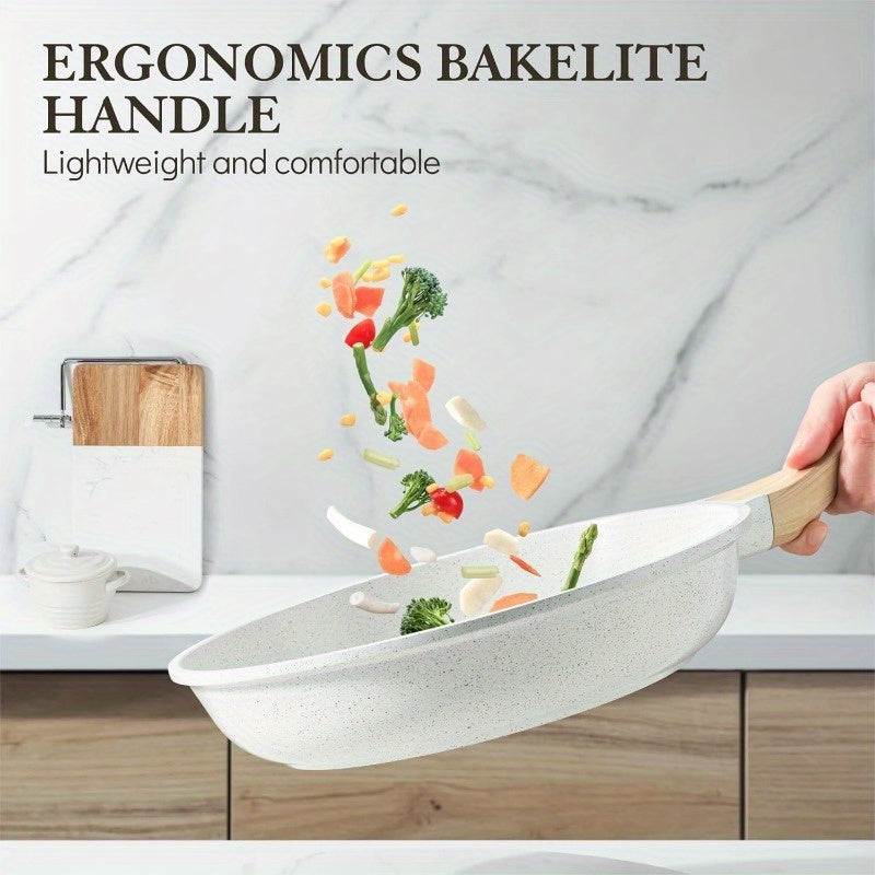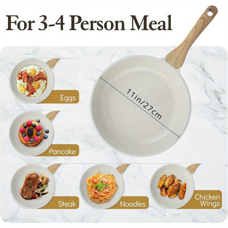 Sartén de cerámica blanca con compatibilidad con inducción y mango resistente al calor para cocinar huevos