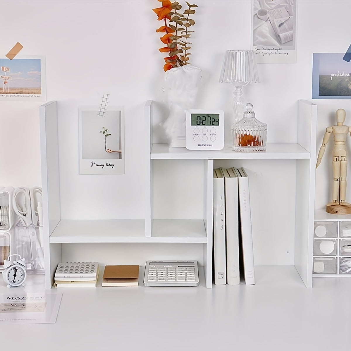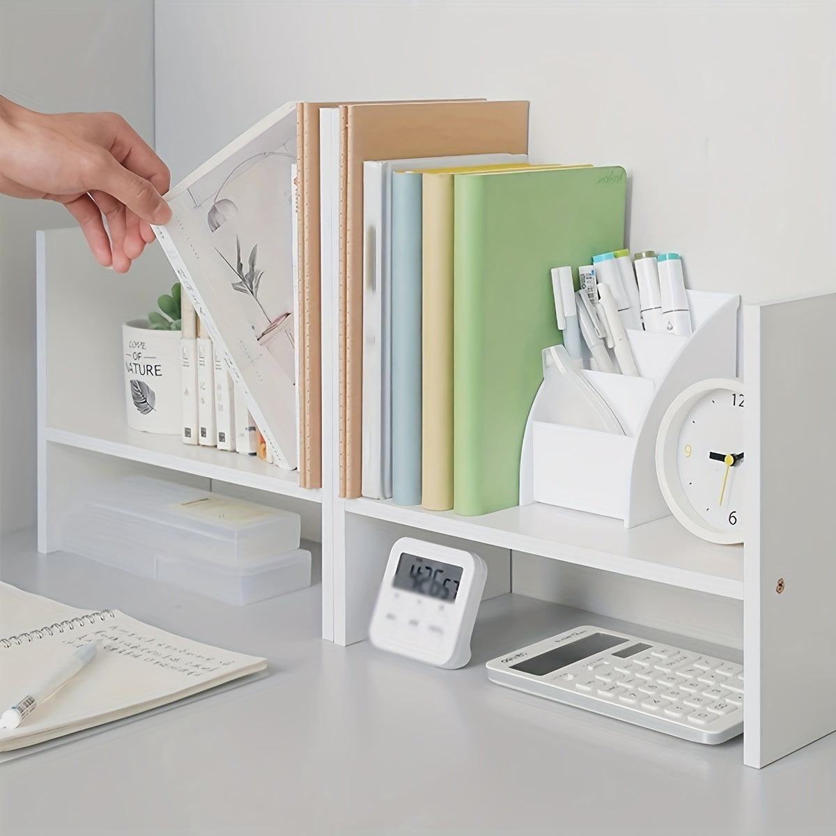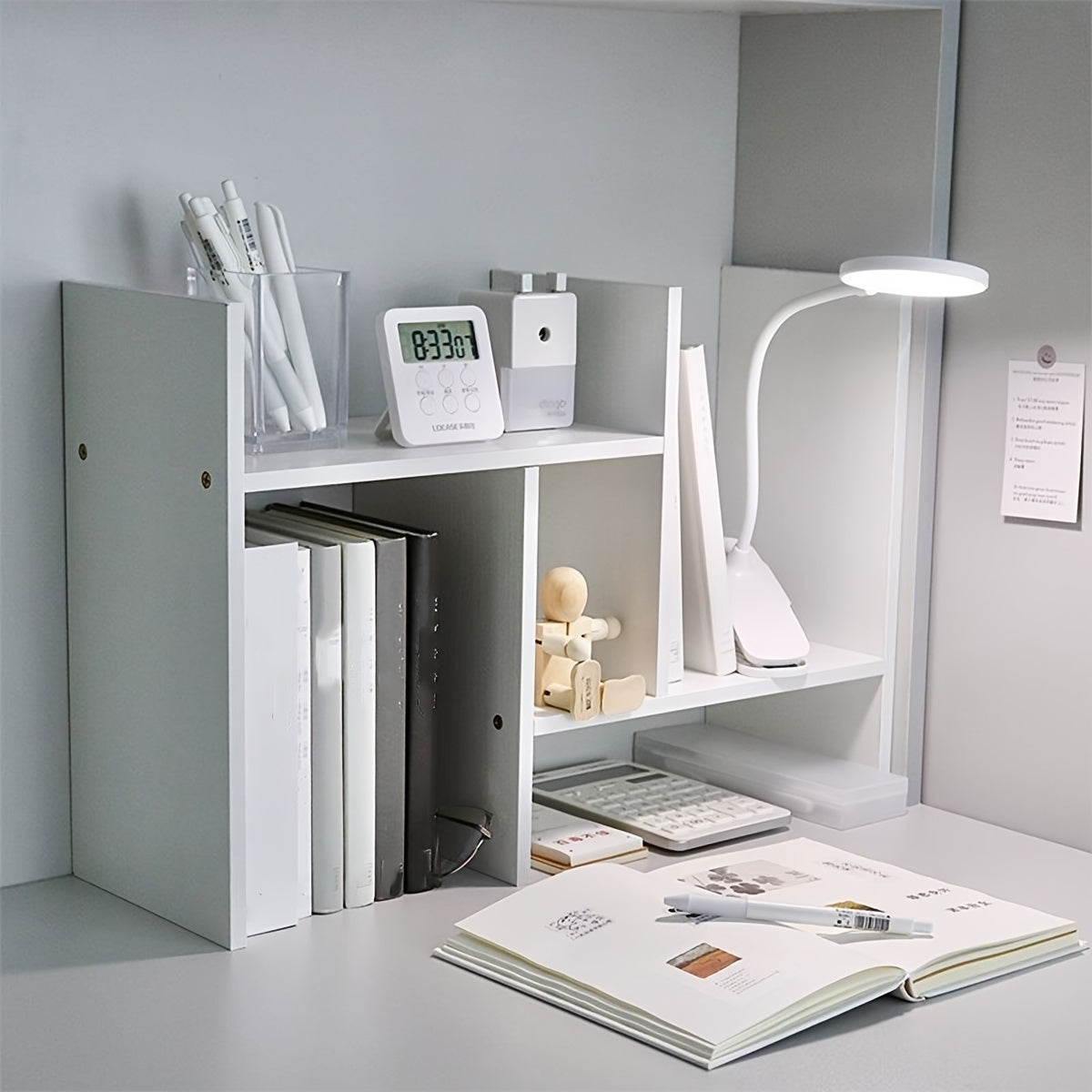 Organizador de escritorio de madera blanca con estantería para oficina y almacenamiento en dormitorio