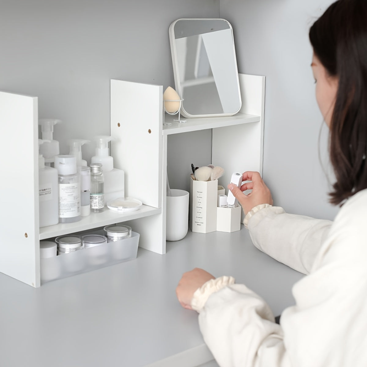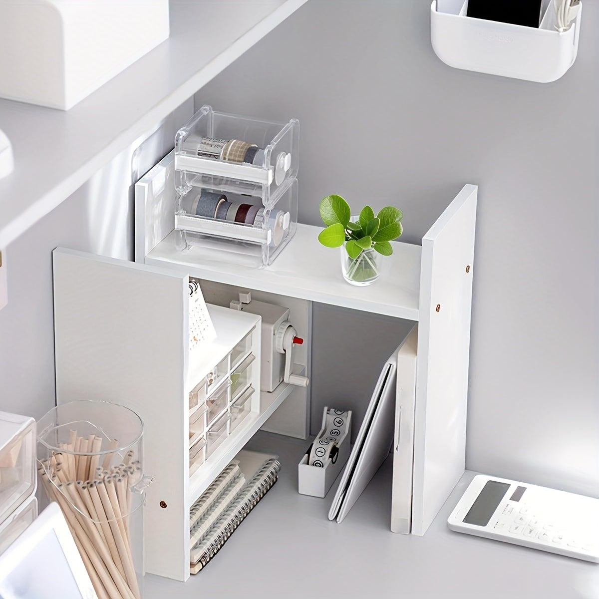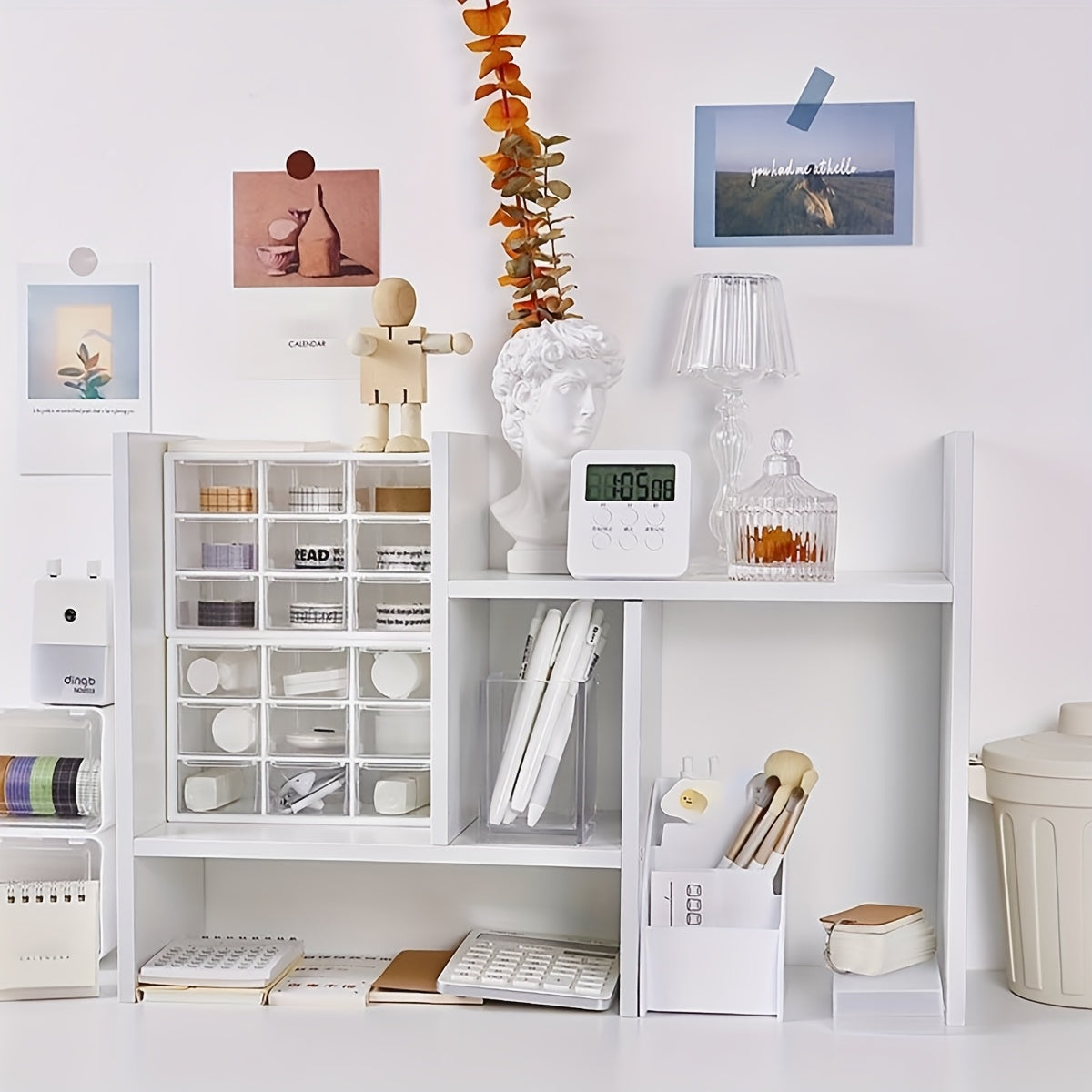 Organizador de escritorio de madera blanca con estantería para oficina y almacenamiento en dormitorio