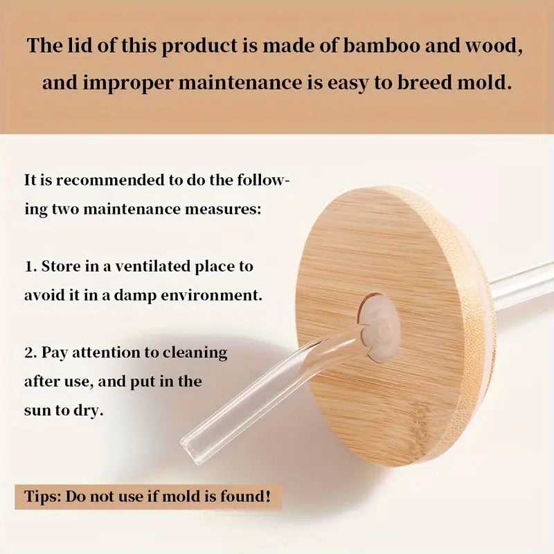 Vaso de vidrio para bebidas frías con tapa de bambú, impreso en 3D, de borosilicato, jugo, cerveza, café