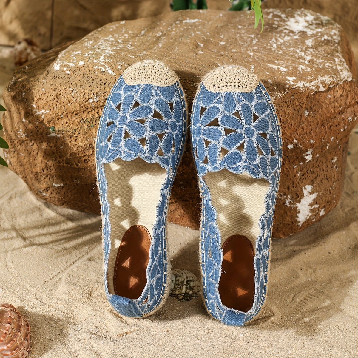 Women Casual Fall Embroidered Floral Flat Shoes Breathable TPR Sole