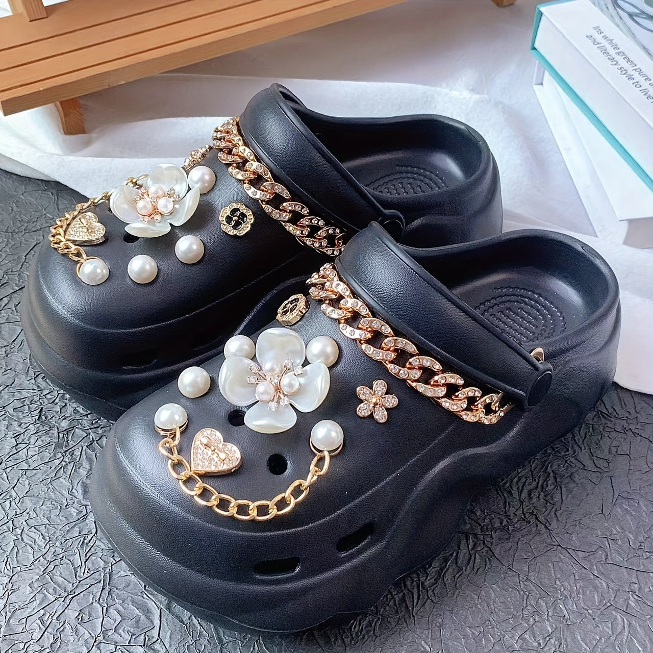Women EVA Sandals Flat Heel Lightweight Breathable with Faux Pearl