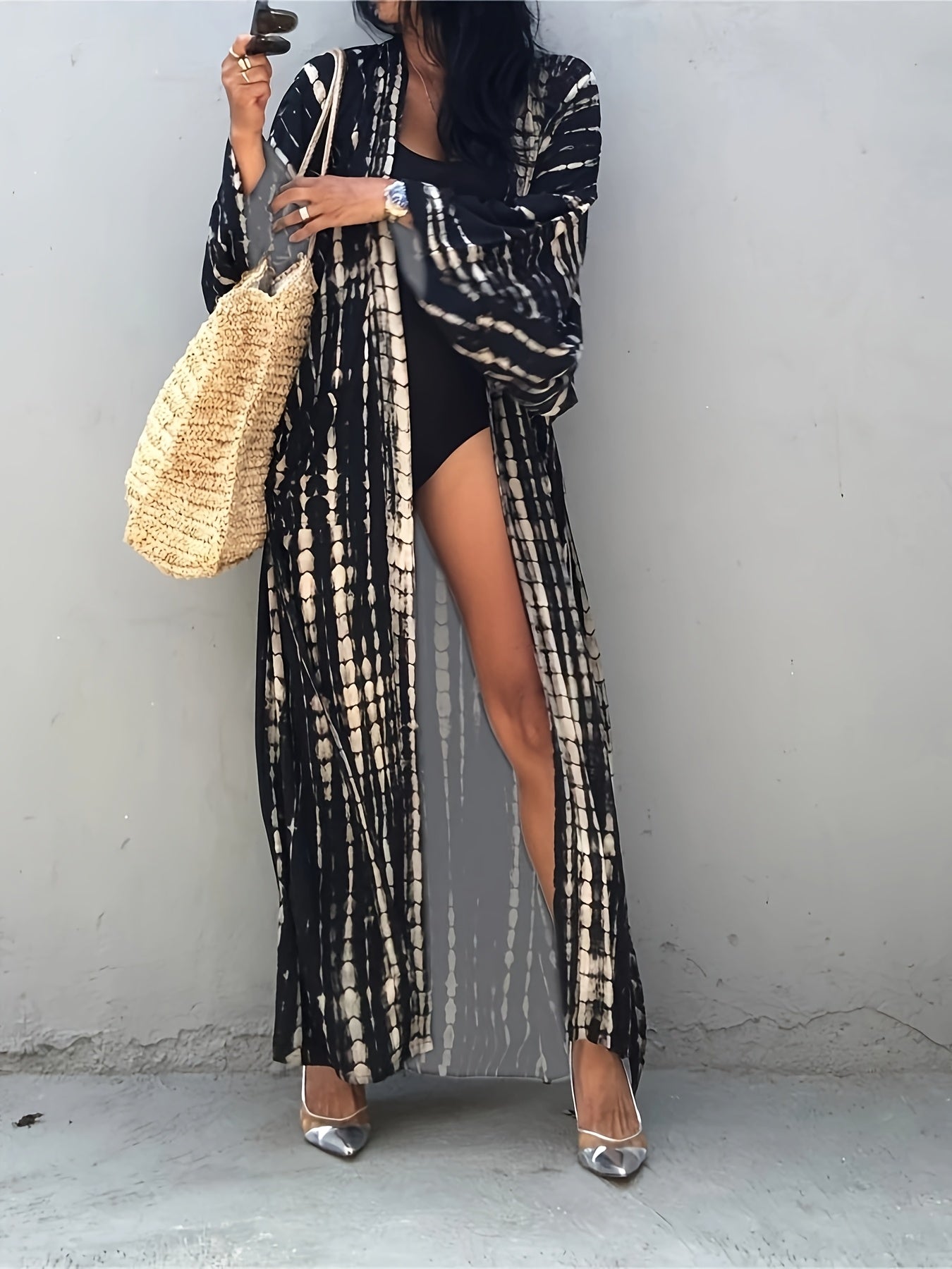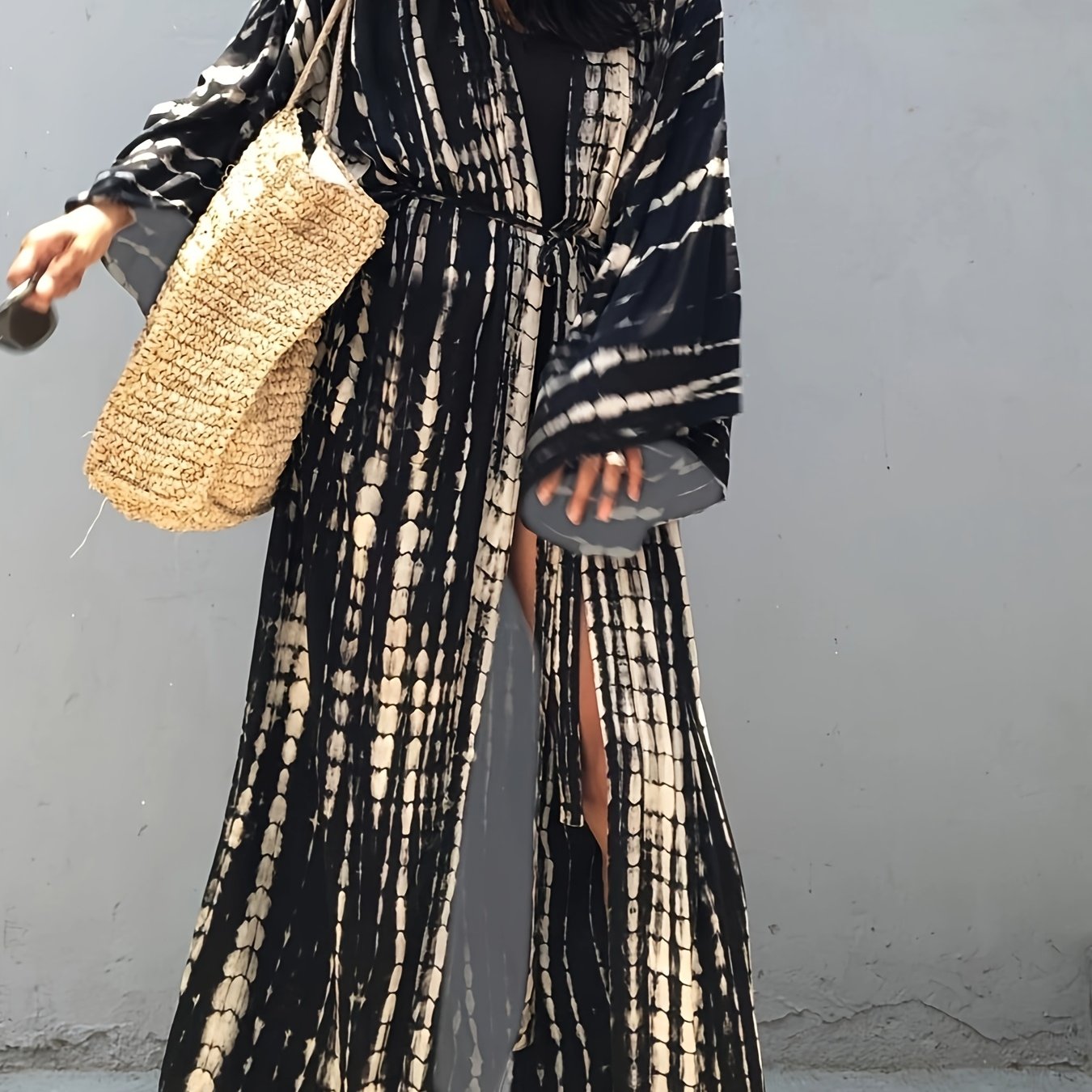 Kimono boho de viscosa para mujer con estampado a rayas, abertura frontal y cinturón para vacaciones en la playa