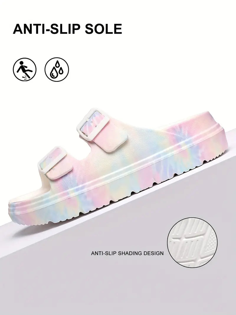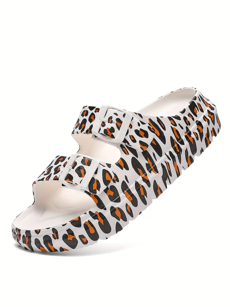 Women's Breathable Leopard Print Slide Sandals with Adjustable Buckles