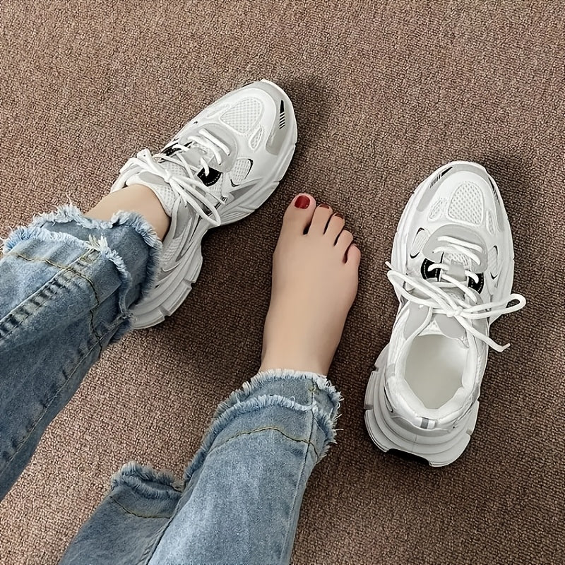 Zapatillas de malla transpirable para mujer, blancas, de caña baja, para caminar