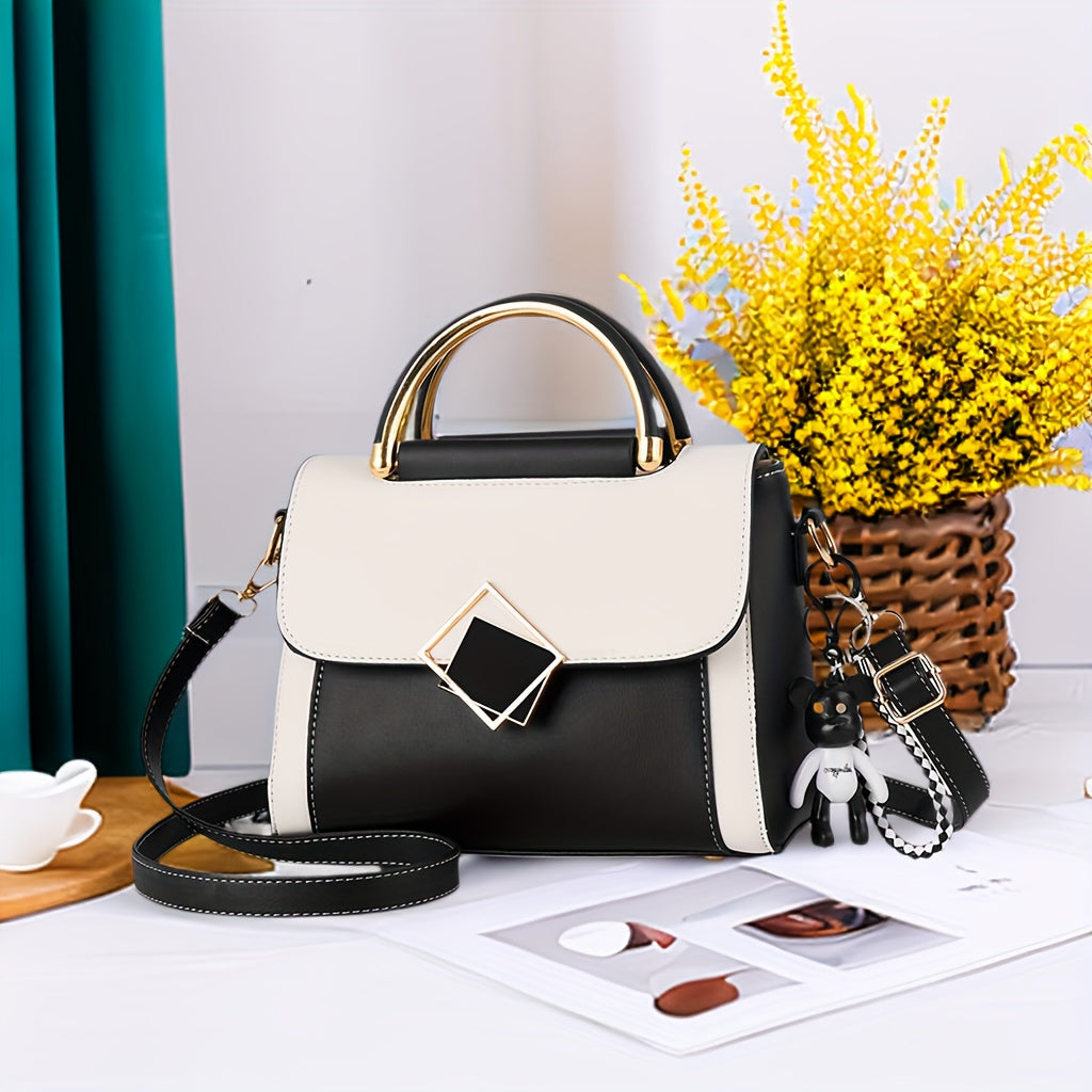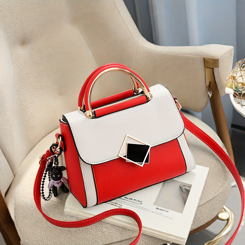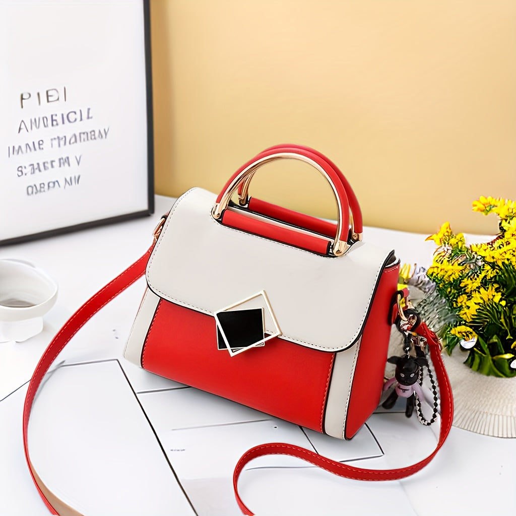 Bolso bandolera de color sólido de PU para mujer con correa ajustable y cierre magnético