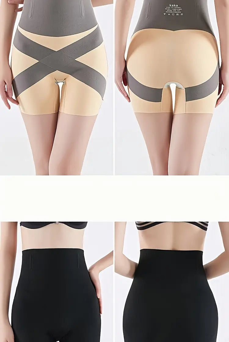 Pantalones cortos moldeadores de cintura alta para mujer, de poliamida y spandex, con tirantes cruzados, soporte y reducción de muslos