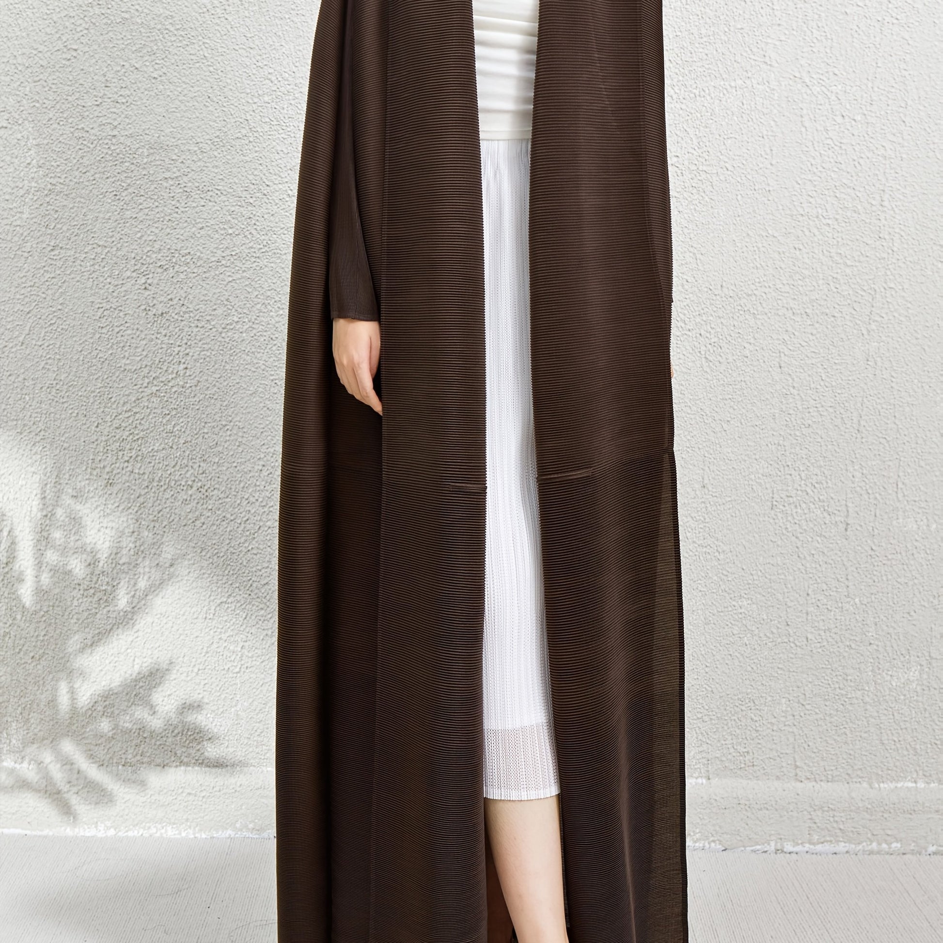 Abaya de manga larga para mujer marrón de ajuste holgado con pantalones de longitud completa